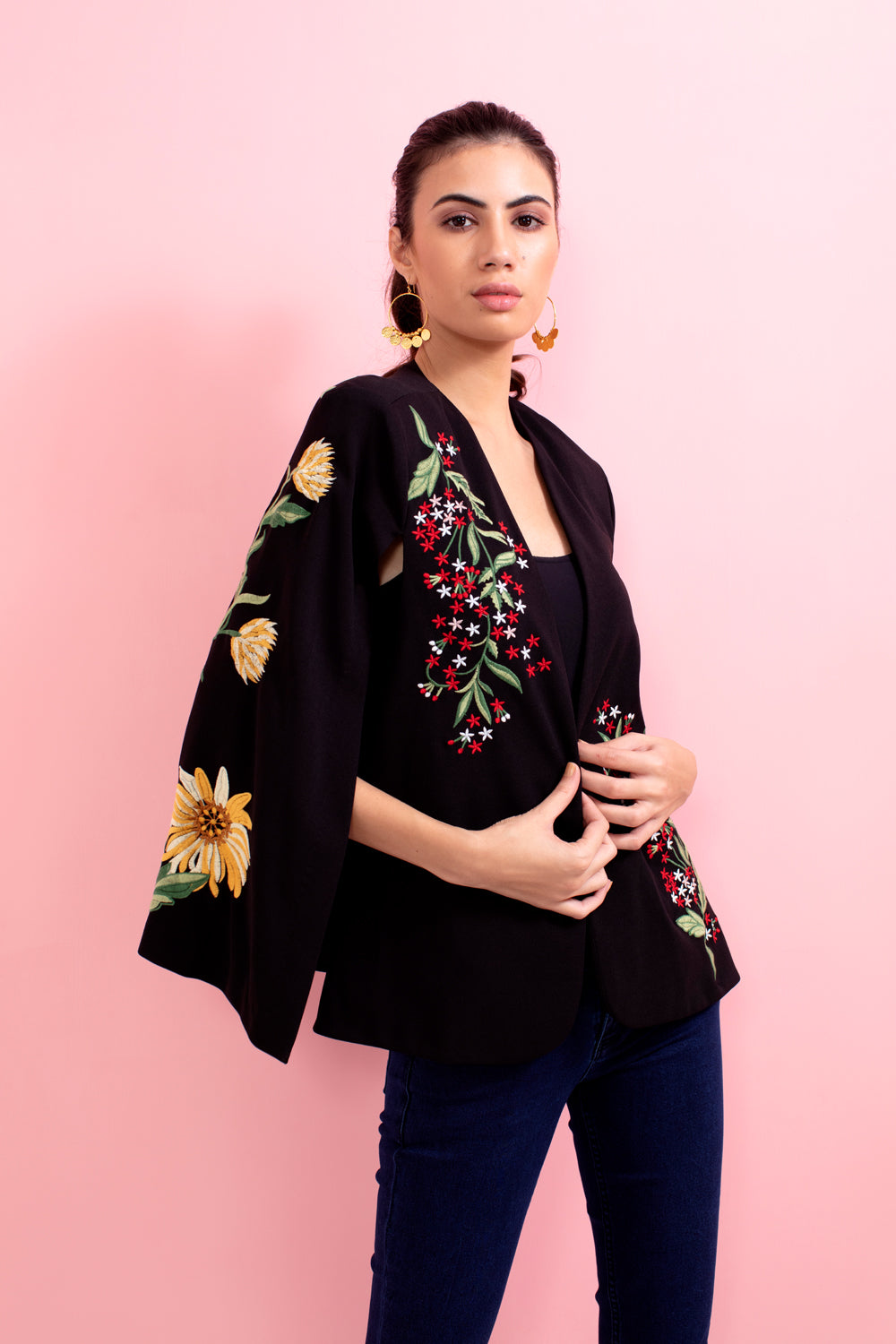 Flattering and a boho -chic exclusive. All over embroidered and beautifully crafted bomber jacket.