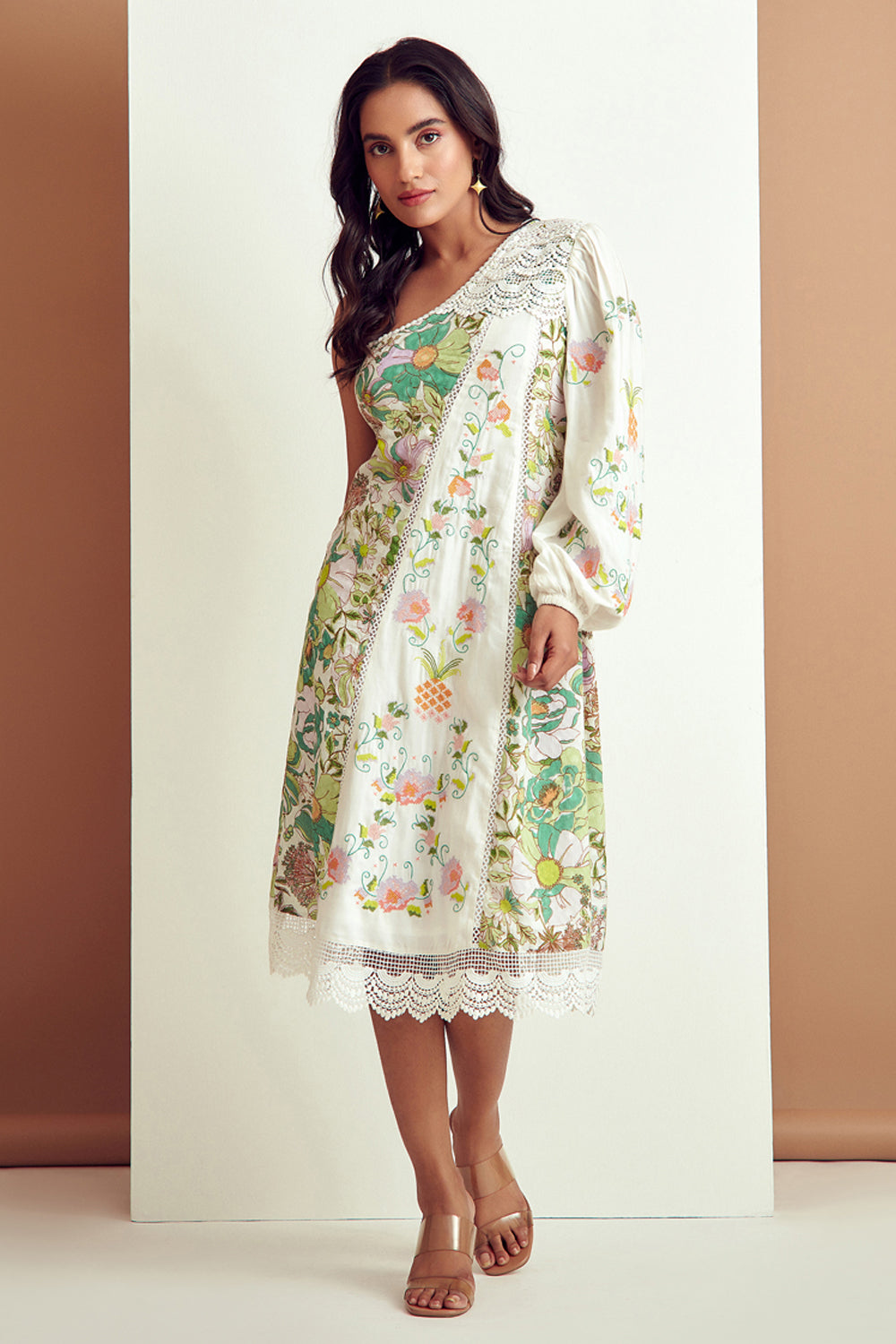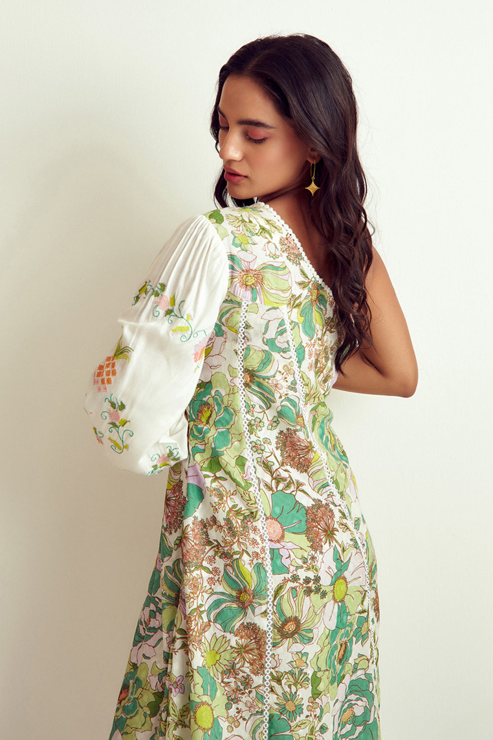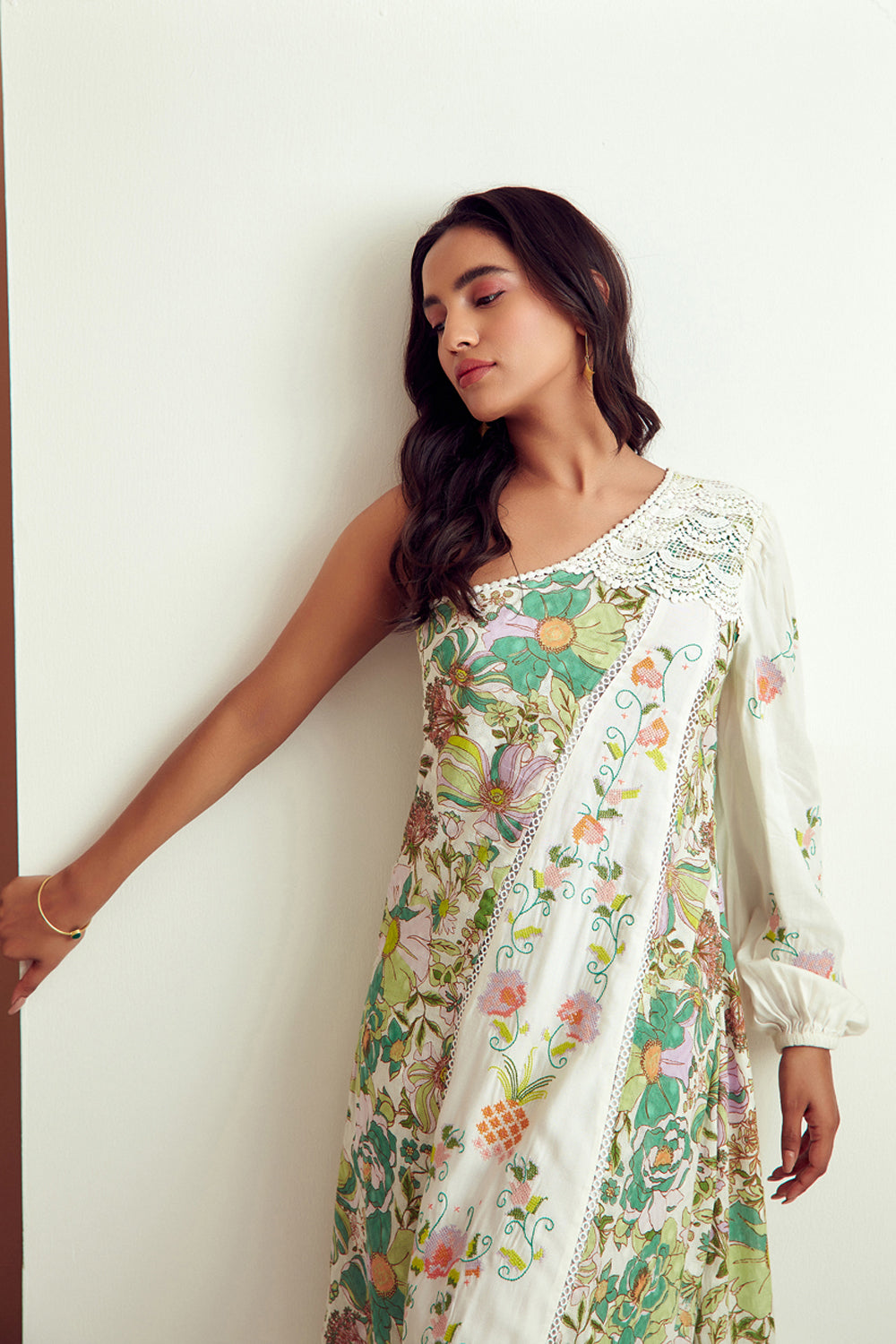 Dainty Floral Embroidered One Shoulder Dress