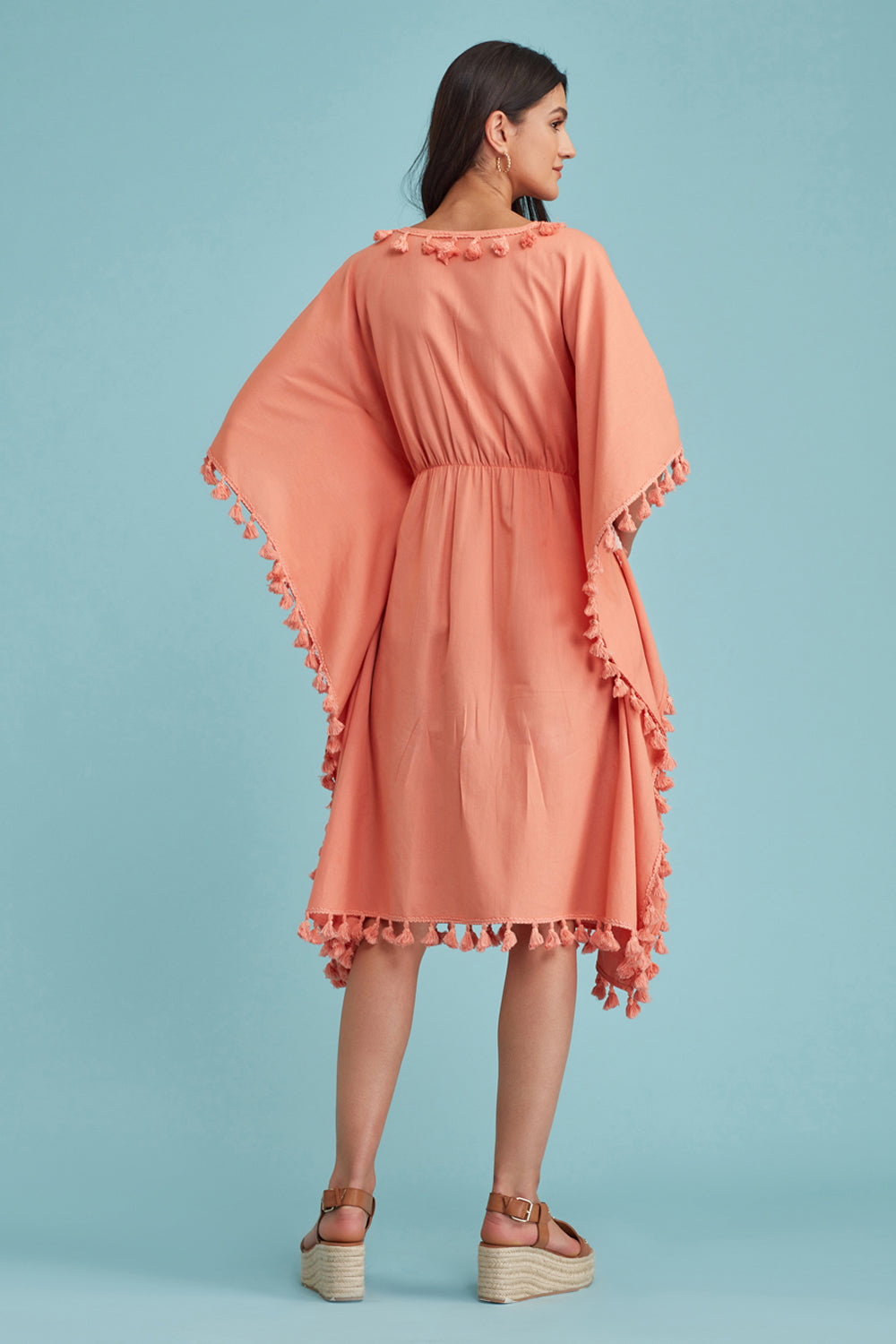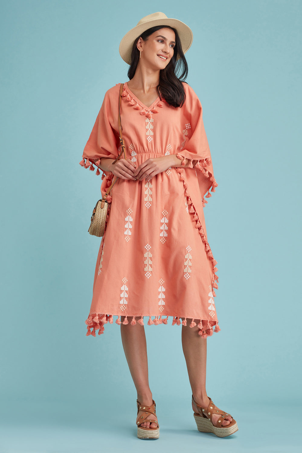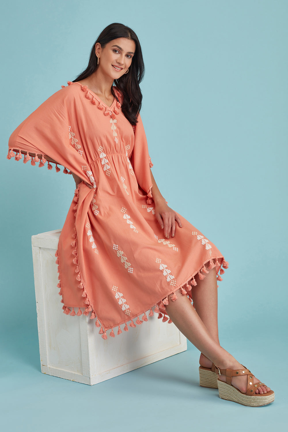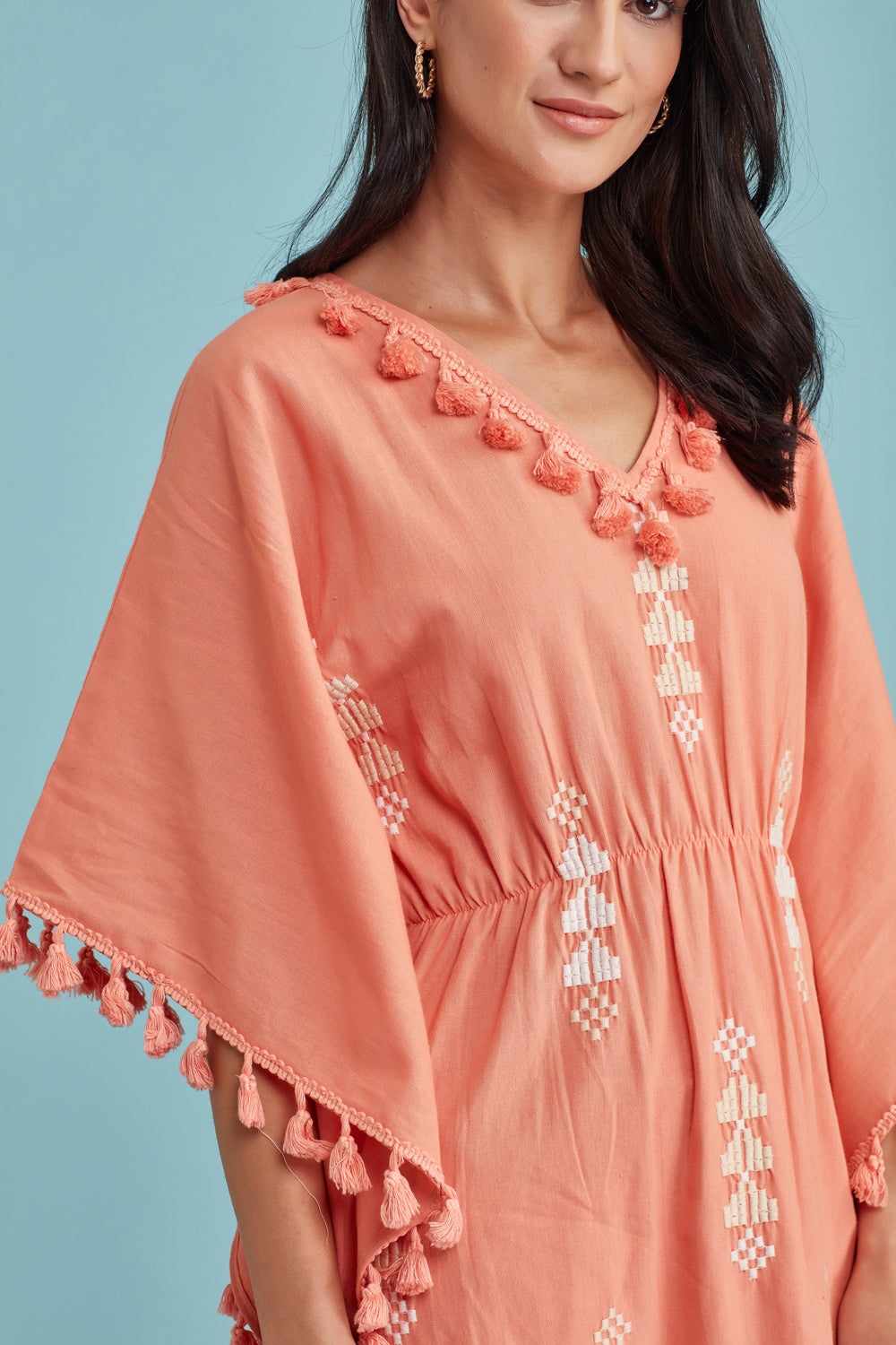 All over embroidery lends this midi kaftan an air of breezy elegance.