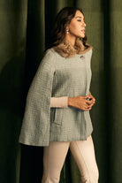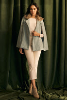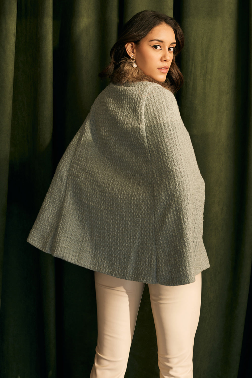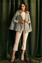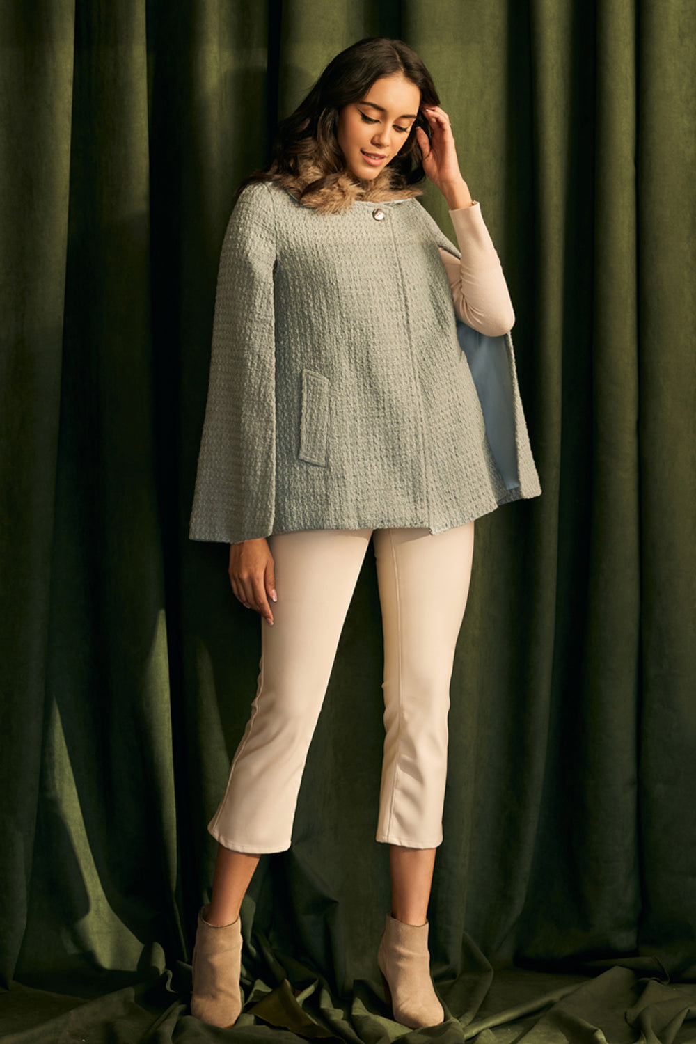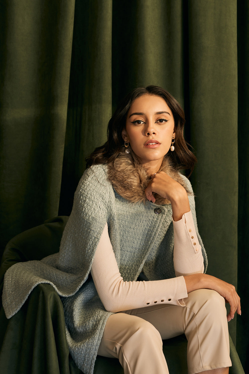 Tweed cape coat detailed with fur for that perfect winter brunch.