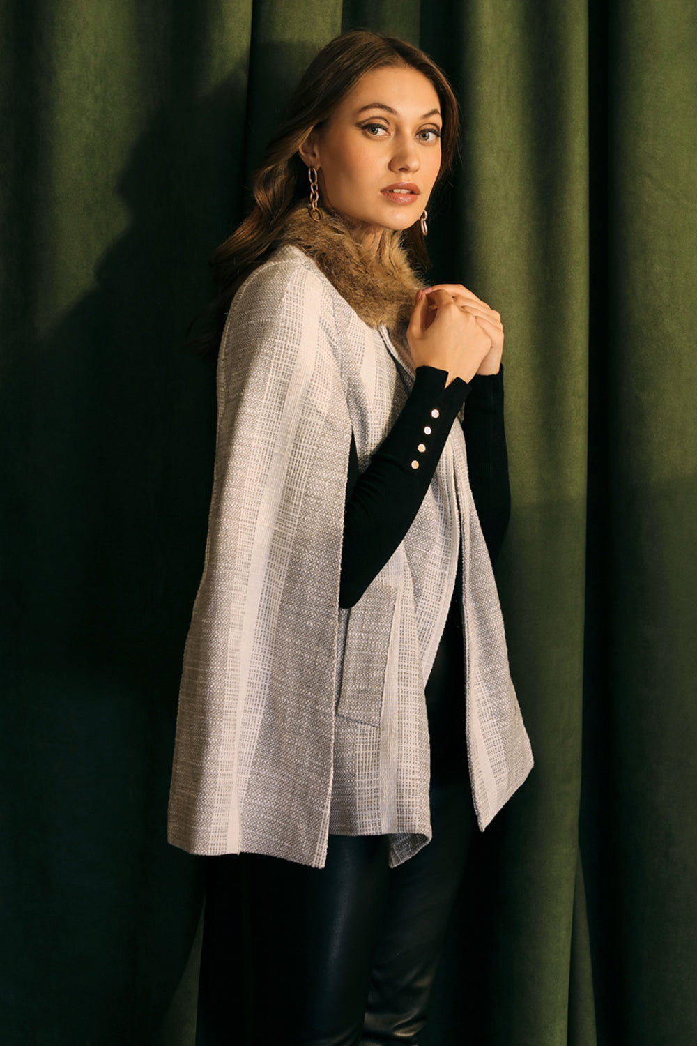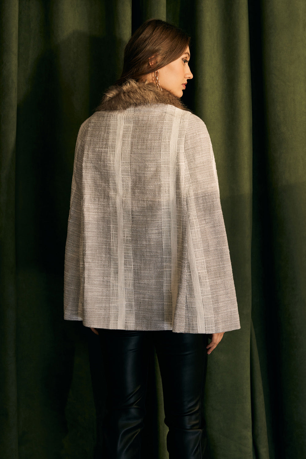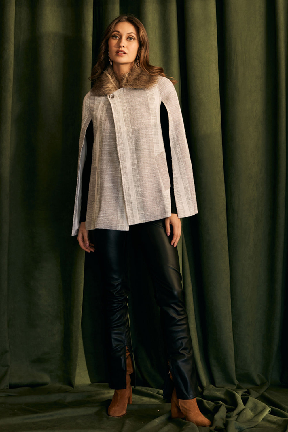 Tweed cape coat detailed with fur for that perfect winter brunch.