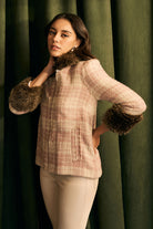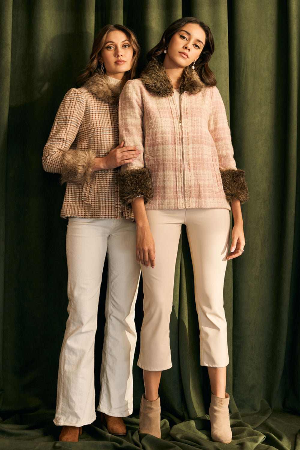 Tweed peplum detailed with fur for that perfect winter brunch.