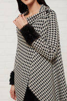 houndstooth fur trimmed knit