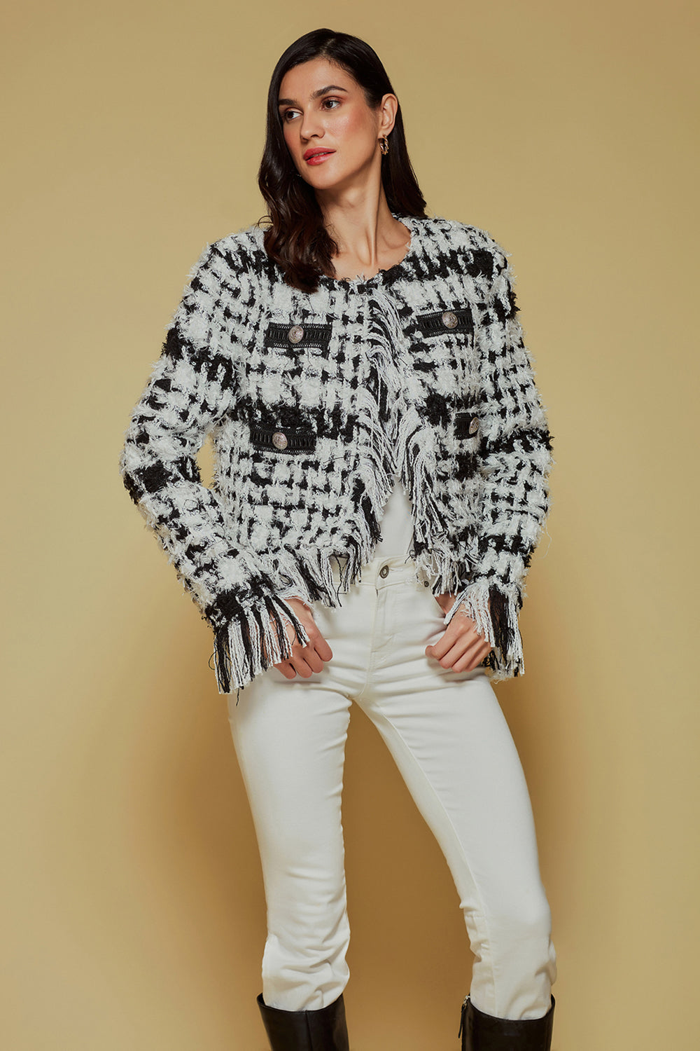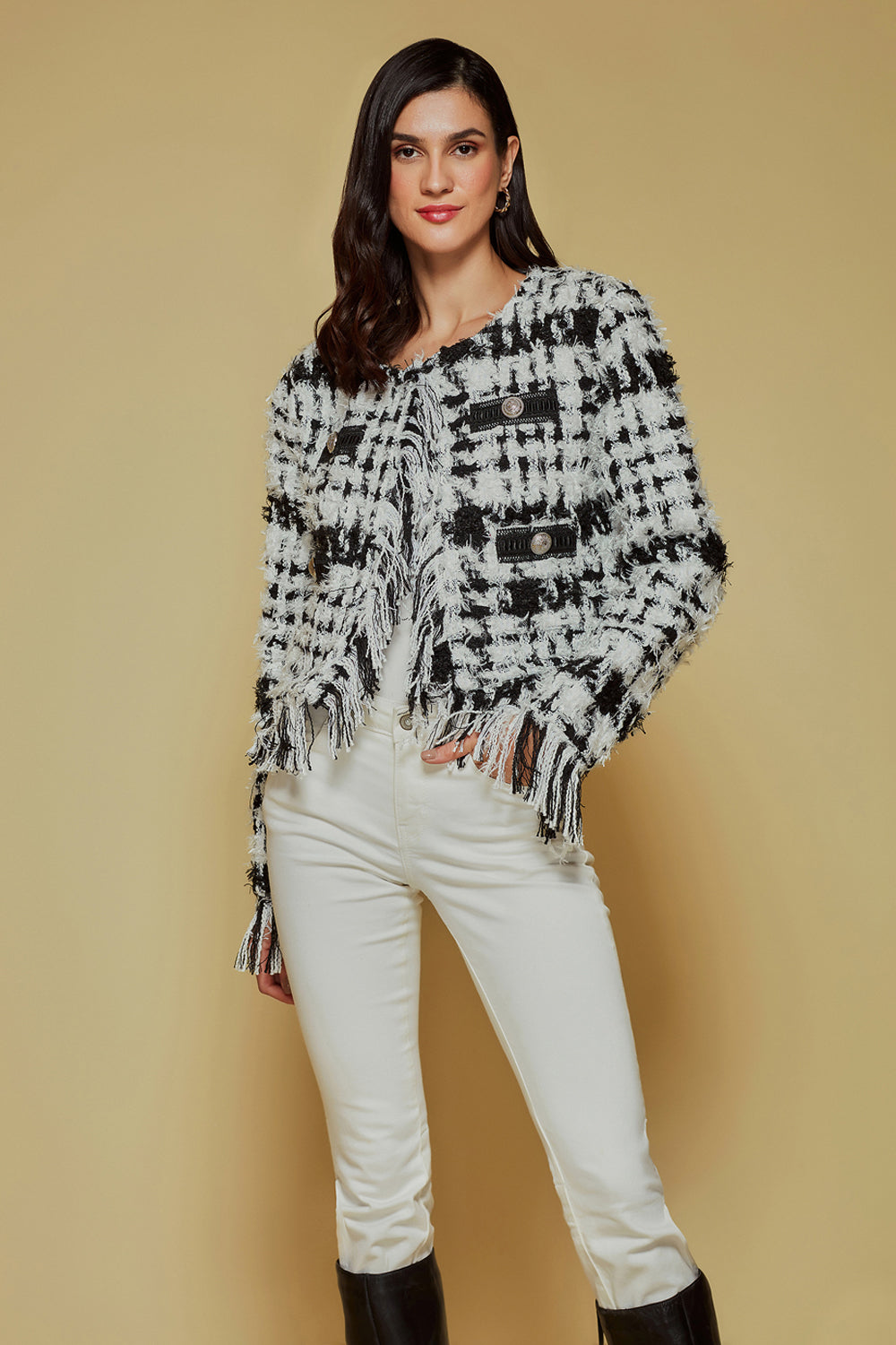 Monochrome Tweed Fringe Jacket