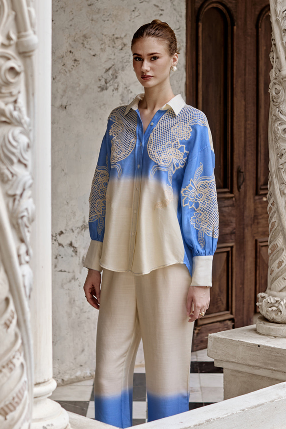 Flattering and elegant embroidery. Crafted in premium quality ombre fabric.