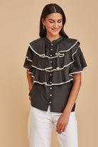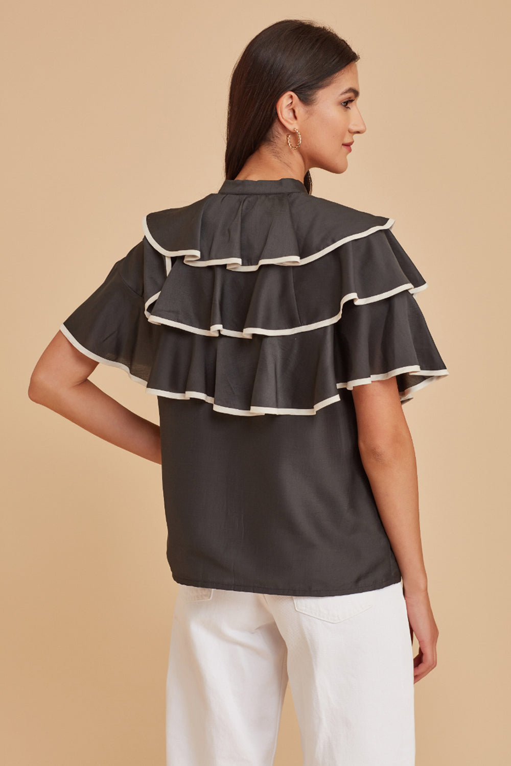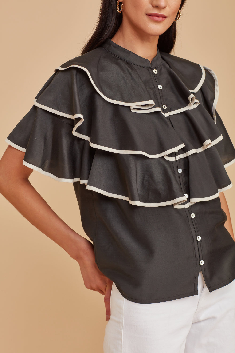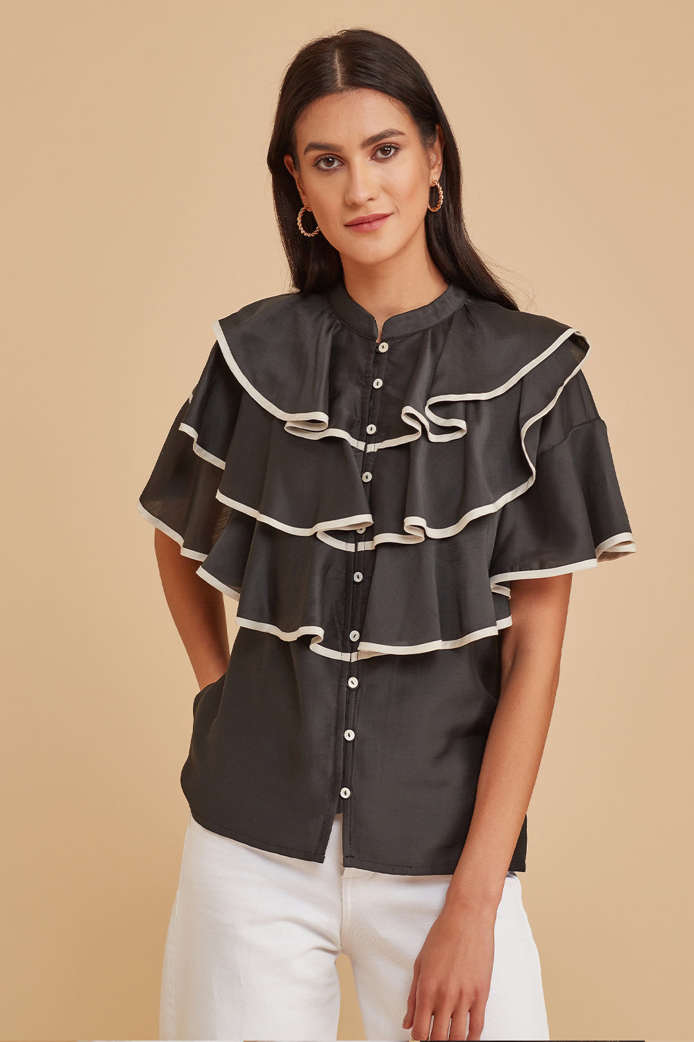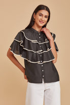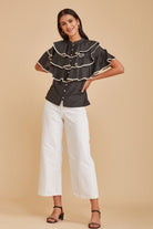 Feminine and fashion forward, the gathers around the yoke puts a dainty twist on everyday denim, trousers or culottes