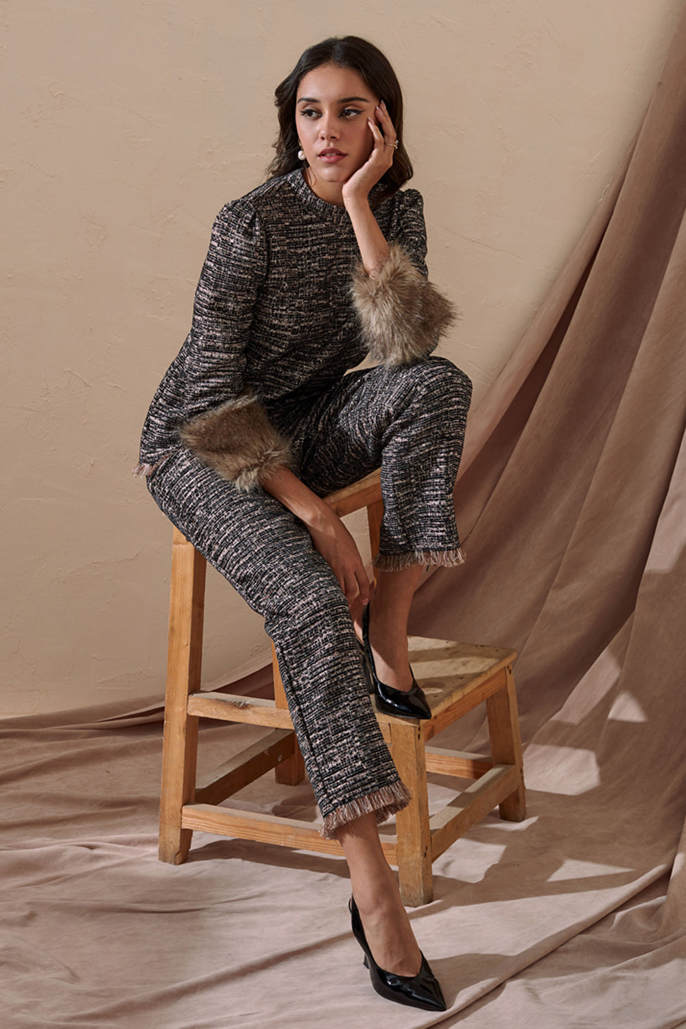 Boho Chic Classic Off the Shoulder Tweed Dress
