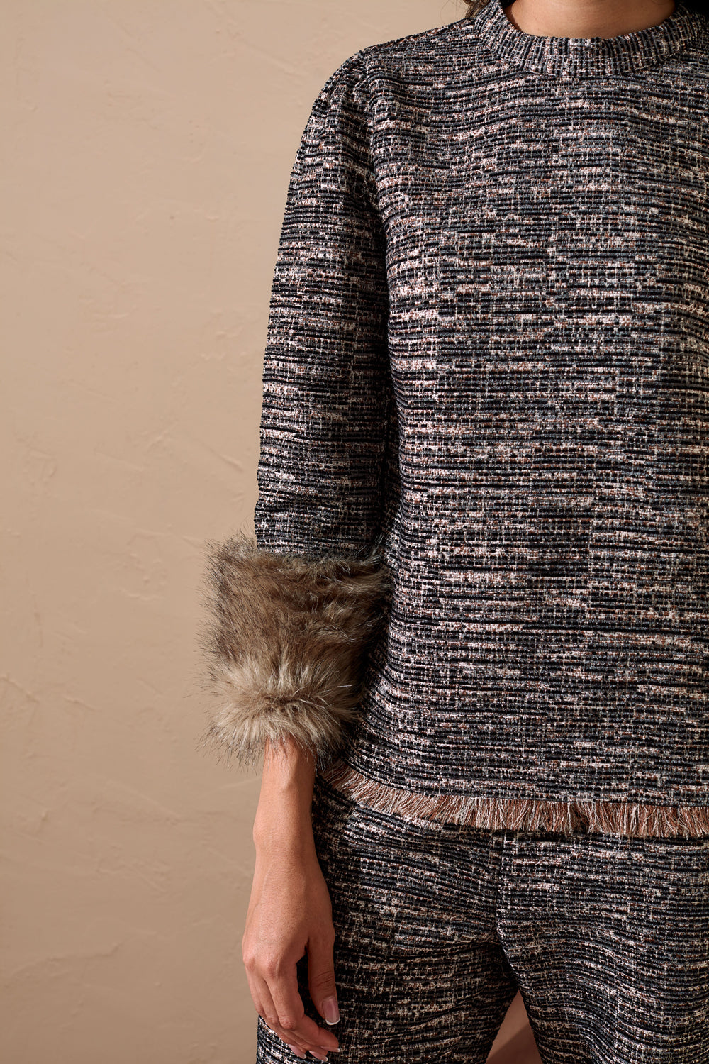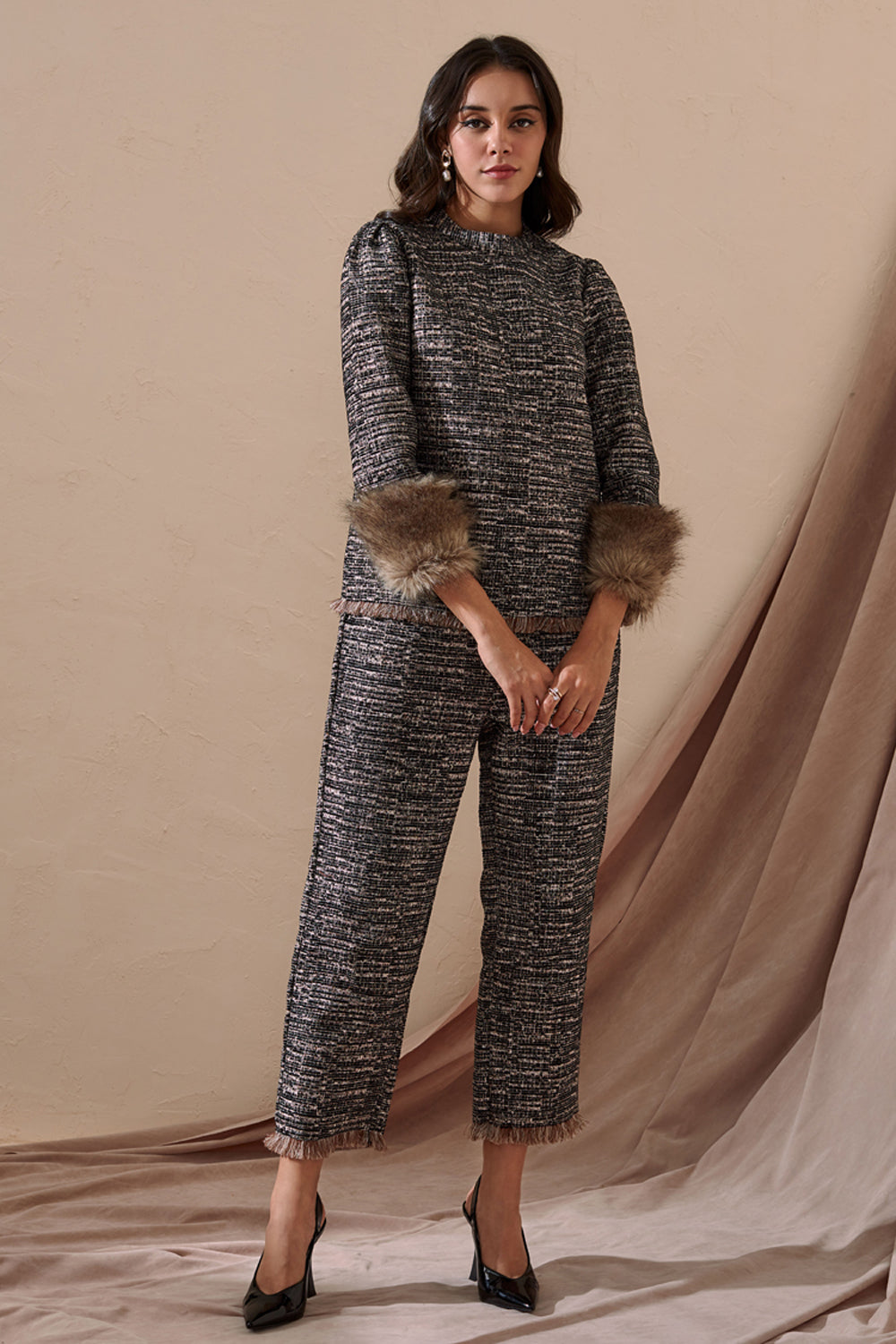 Fur Trimmed Tweed Co-ord Set