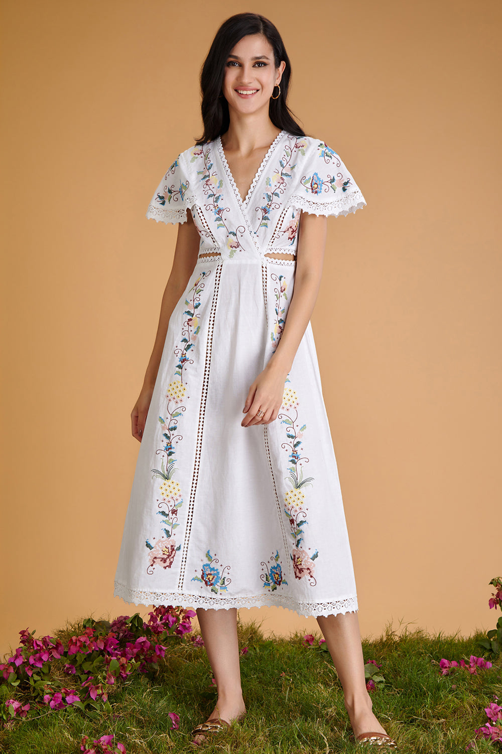 Sanjana Batra In Our Pure Abundance Embroidered Midi Dress