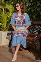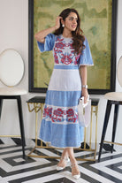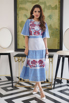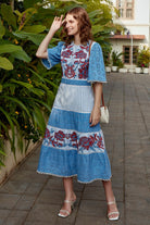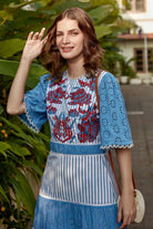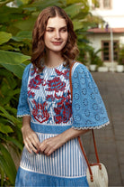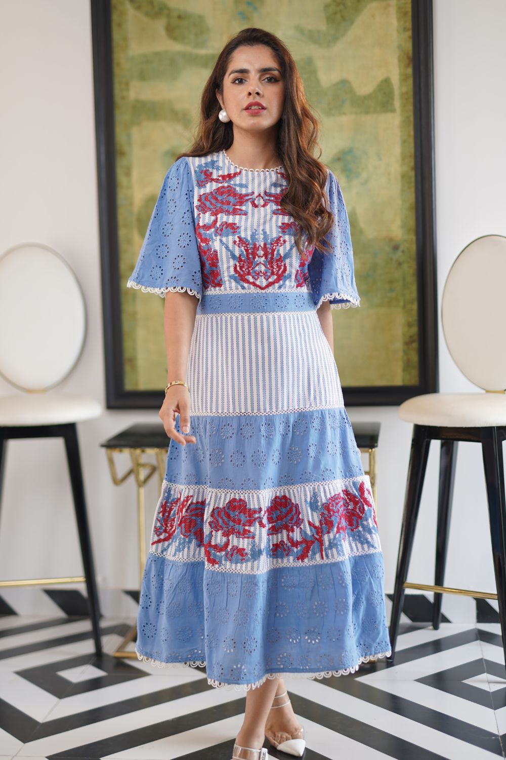 Sharnamli In Our Aqua Floral Embroidered and Broderie Midi Dress
