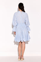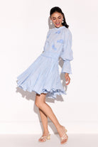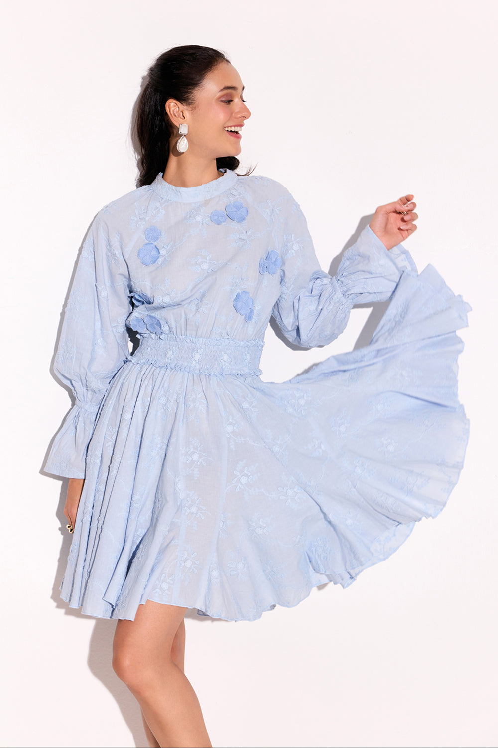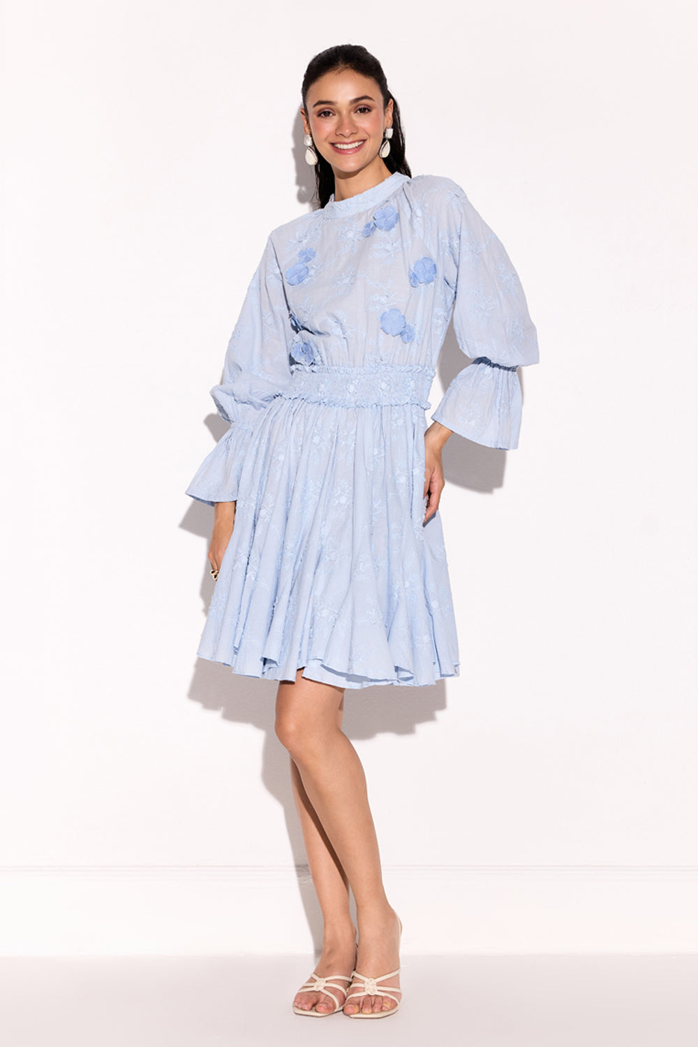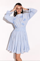 Smoked waistline embroidered applique flowers on the yoke dress.