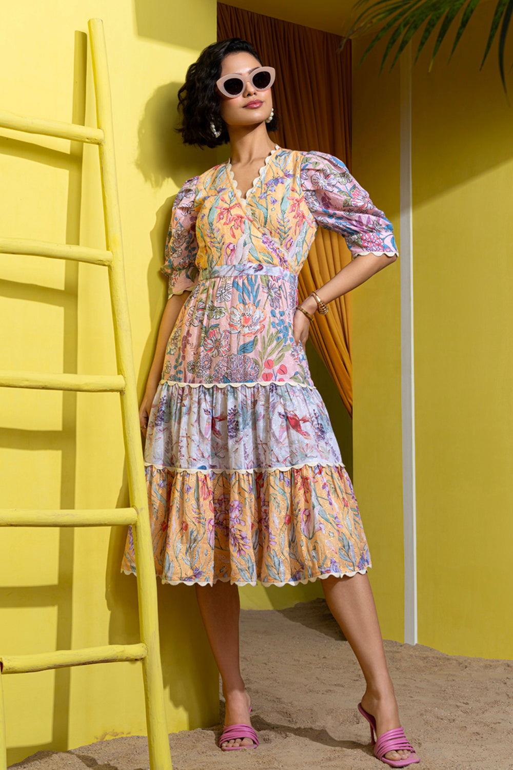 Put a nature inspired staple in the summer spot light and bloom all season long!The scallop lace detailing and layered skirt with a feminine neckline makes this dress a wardrobe staple.