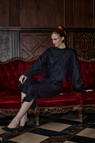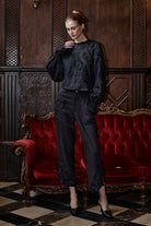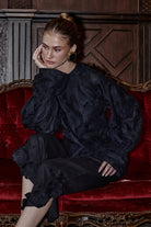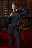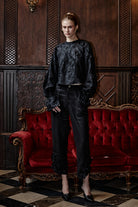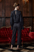 Refined and flattering.Structured yet delicate. Beautifully crafted in fine cotton with 3 d embroidered flower applique on bottom hem and all over on the blouse makes this matching set extra ordinary.