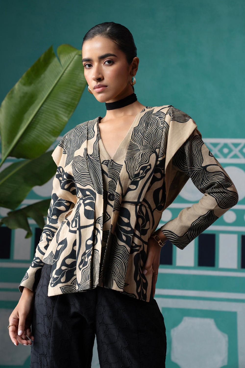 Iconic Striking Print Blouse With Pant Set