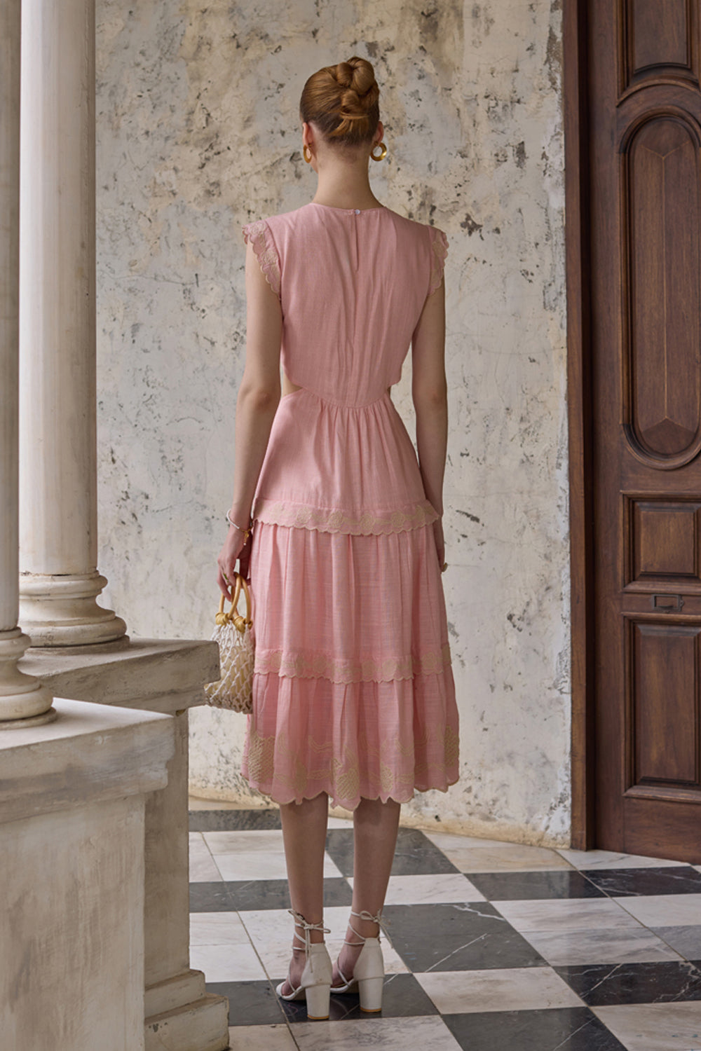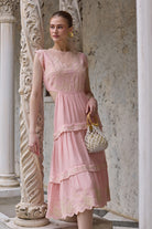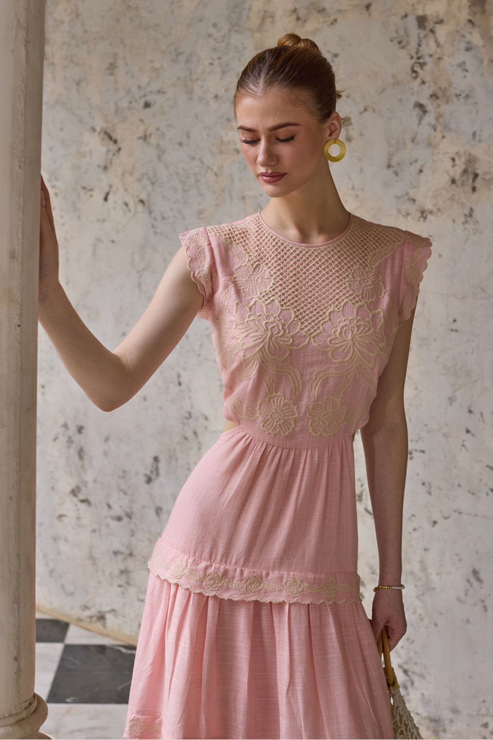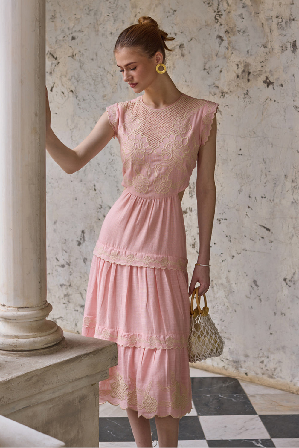 Offering a stunning embroidered silhouette and a wrap skirt.