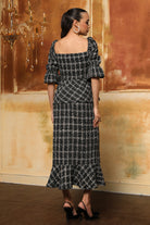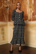 Classic exquisite metallic tweed peplum skirt. Pair it with boots for the perfect winter