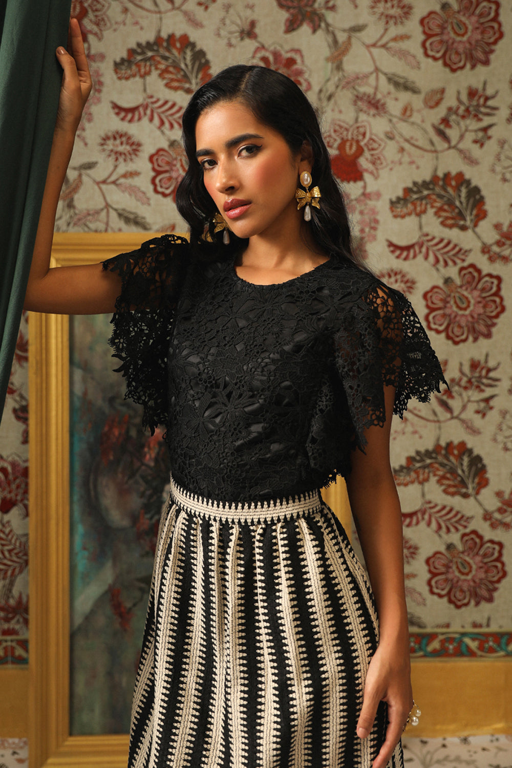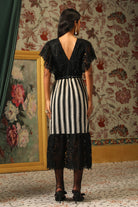 Lace yoke and bottom hem with a mix of crochet midi dress makes this dress unique and on point for a brunch or evening party