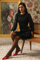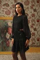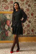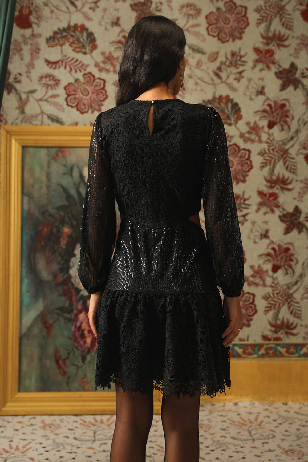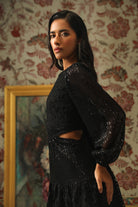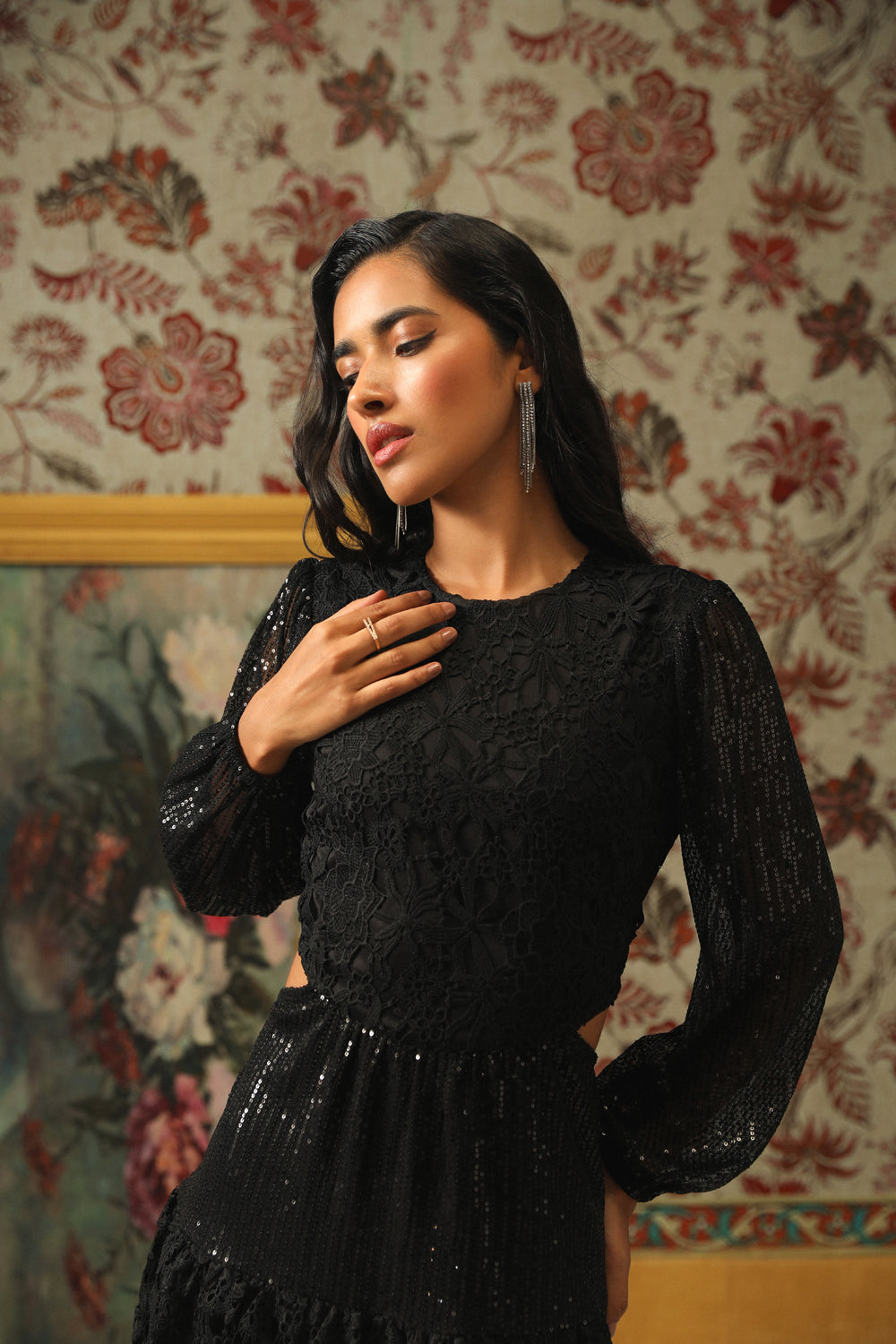 Beautifully crafted dress in lace and sequin with side cut outs on the waist. An absolute must have for a milestone celebration or an event ready ensemble.