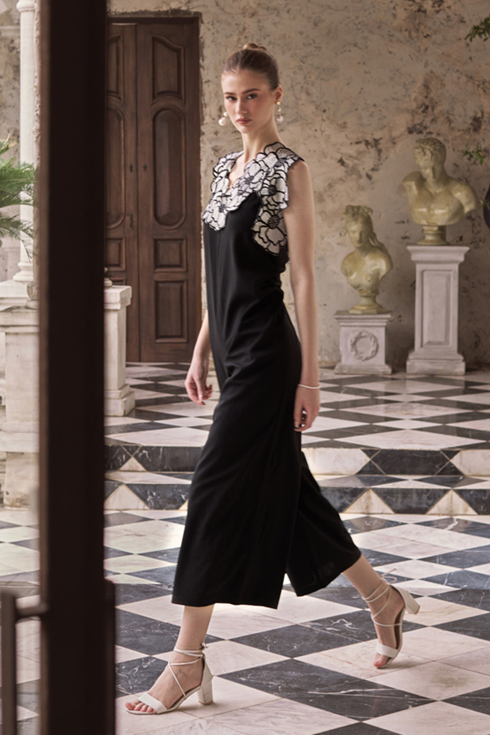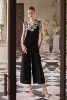 3D embroidered applique flowers jumpsuit. Oh so flattering for a polished night out.