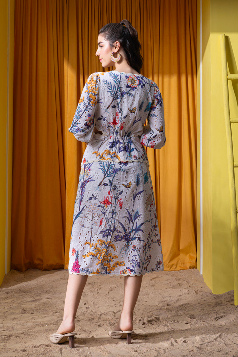 Summertime Printed Broderie Midi Dress