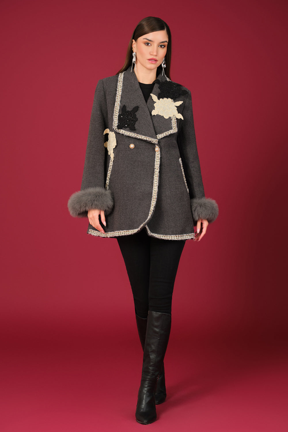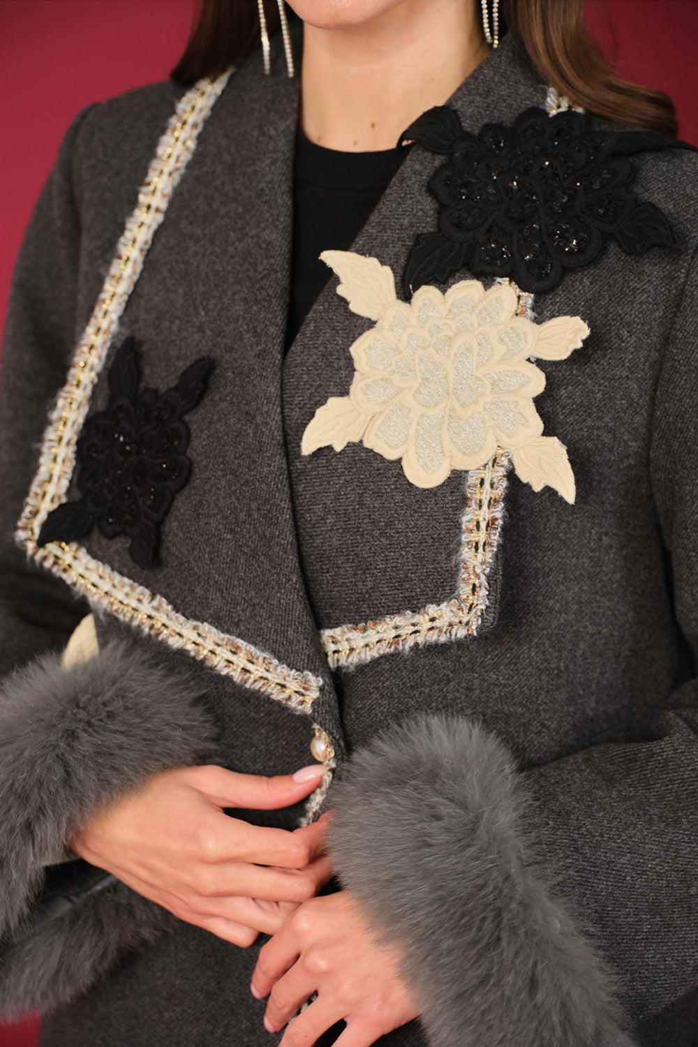 The Flower Applique Coat- Grey
