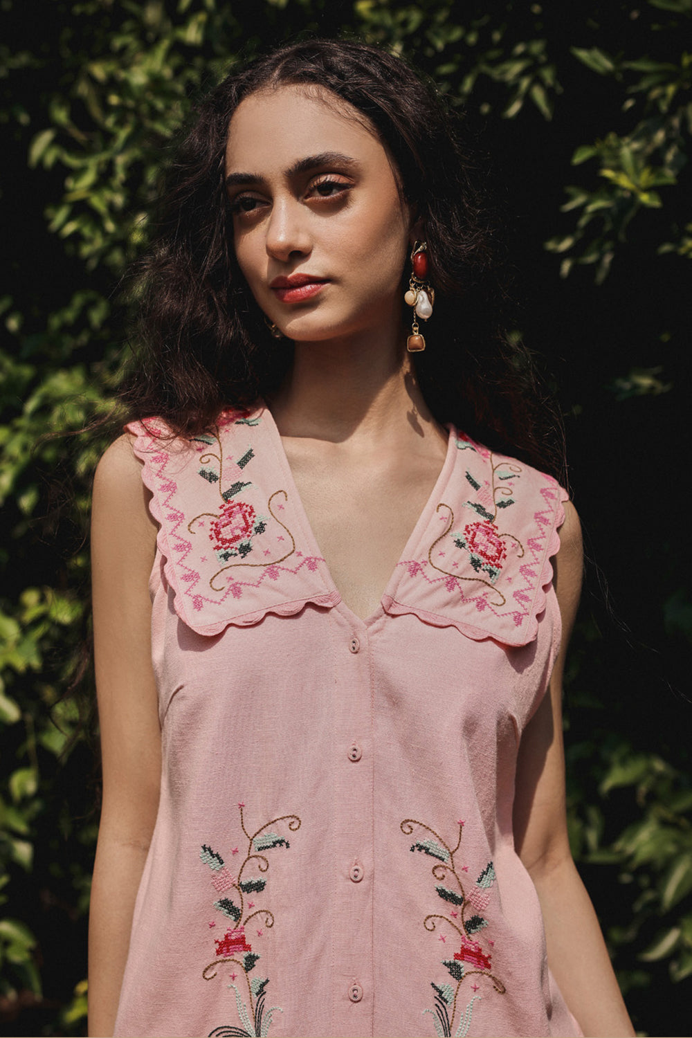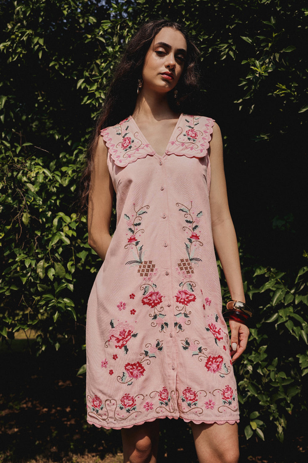 All over cross stitch embroidered dress feminine and perfect for a summer brunch.