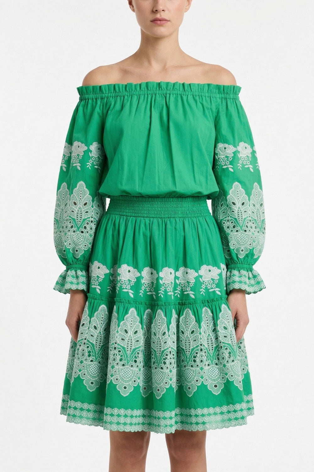 Scarlet Scallop Embroidered Set