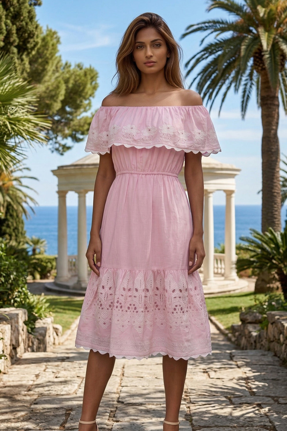 Pastel Cross Stitch Embroidered Midi Dress