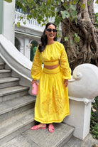 Gorgeous sunny yellow embroidered skirt set.