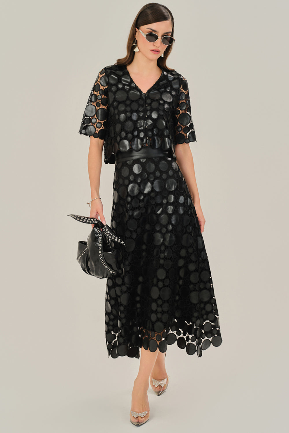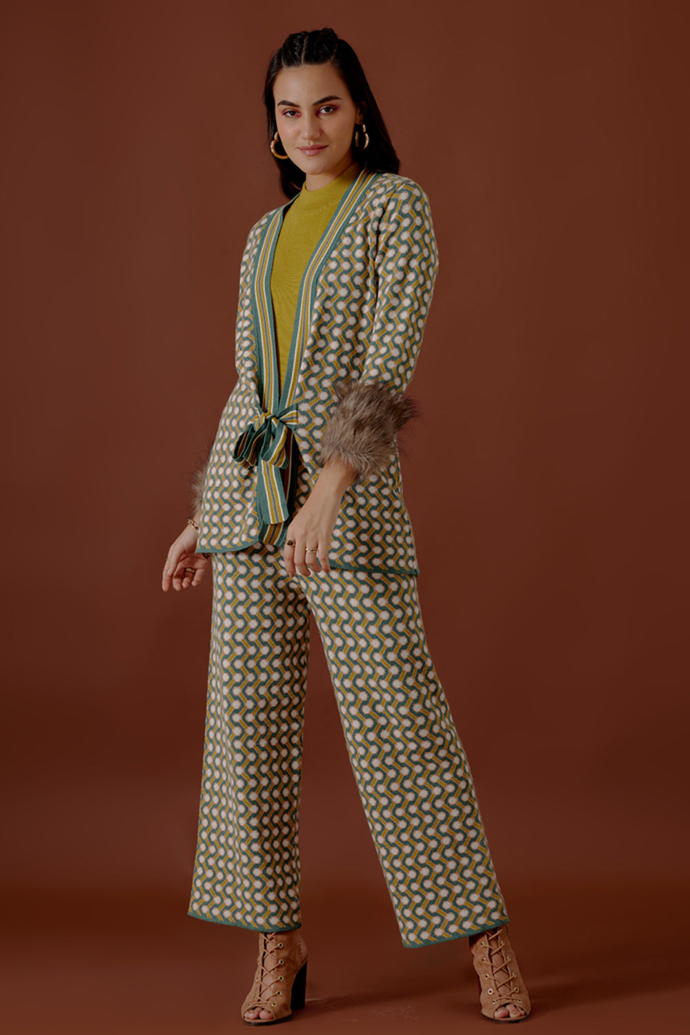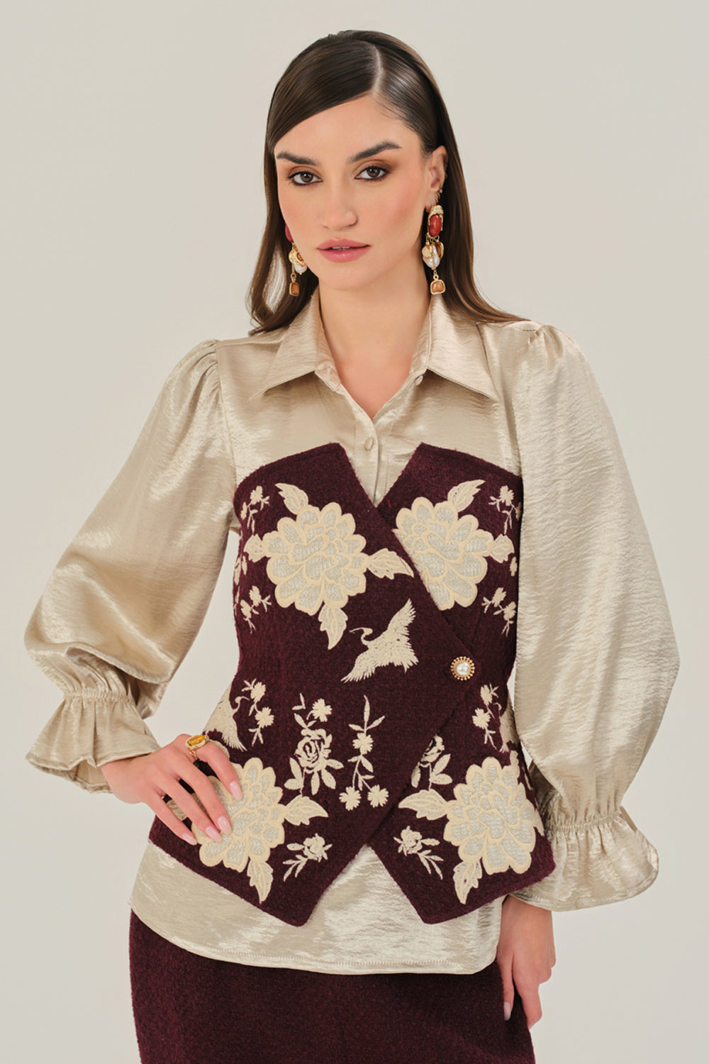 Floral Crochet Embroidered Co-ord Set- Fawn