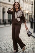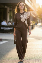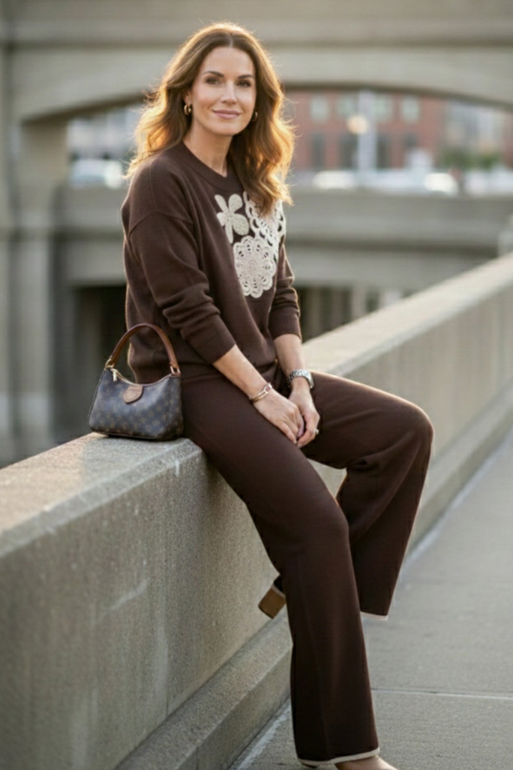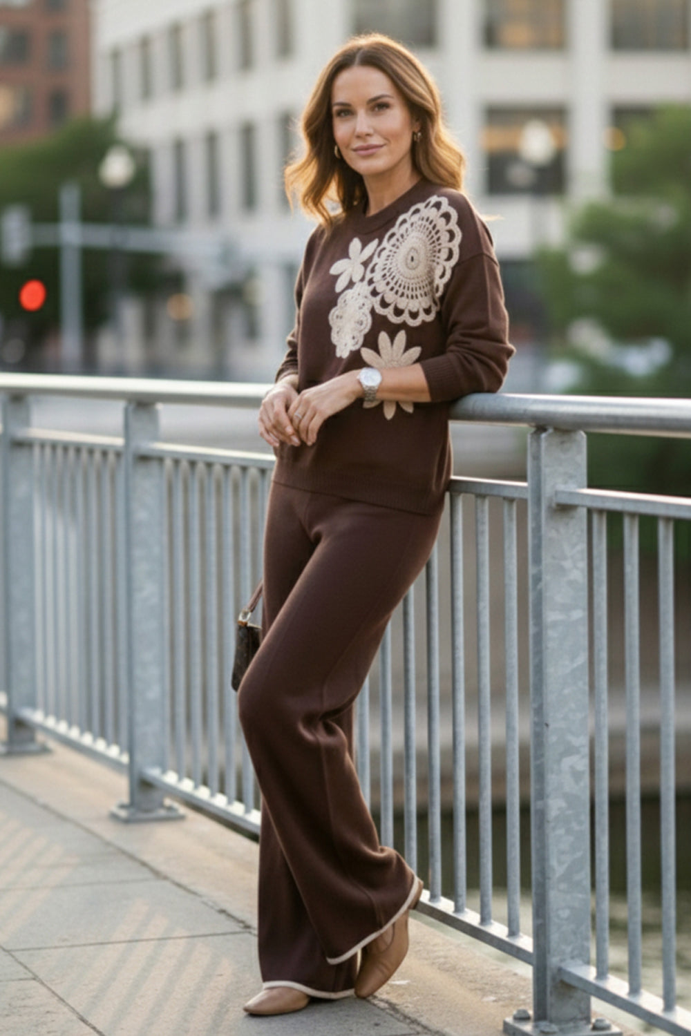 Exquisite floral embroidery on knit. Perfect for winter laid back afternoon.