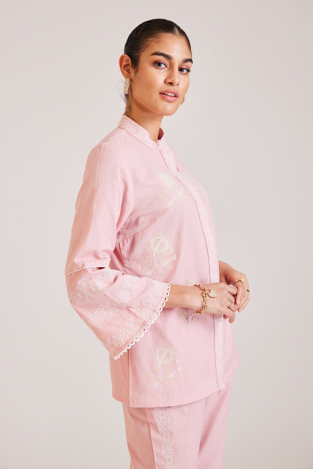Pastel Pink Sequinned Metallic Tweed Co-ord Set