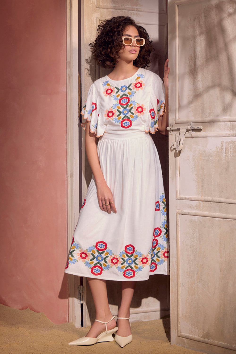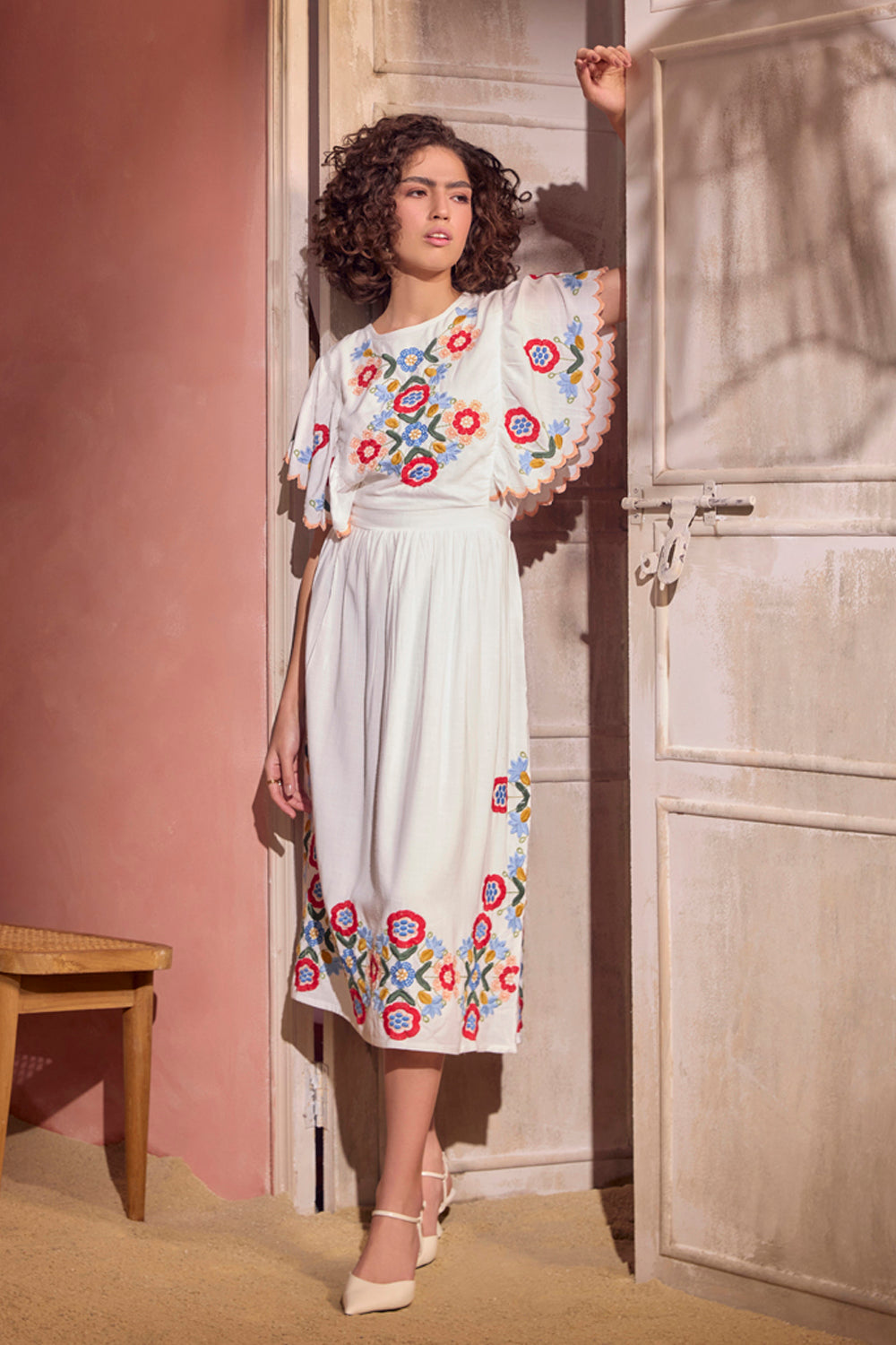 Effortless fit and uber classy. The multi coloured embroidery and embroidered scallop detail makes this garment extraordinary and a go to silhouette for a brunch or a sun downer.