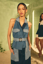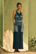 A mix of denim shades to create this exquisite this midi dress. A must have denim dress for your summer wardrobe.