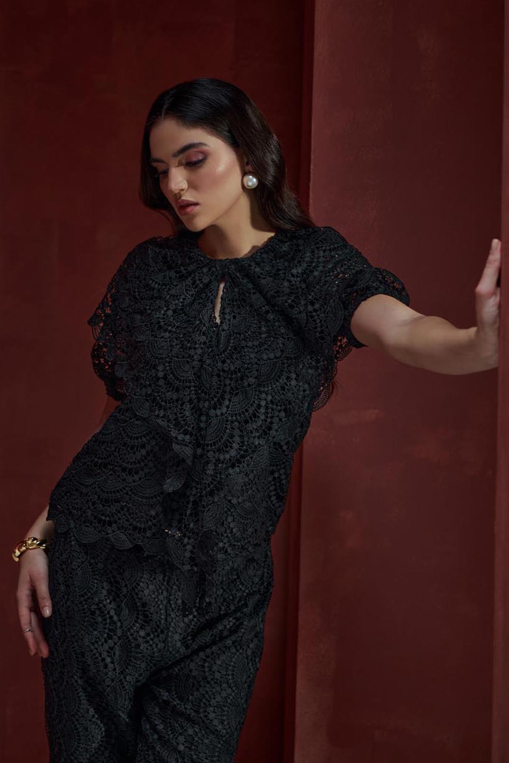 Elegant and classic Blouse crafted in premium lace with matching pants.