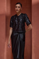 Classic sequinned blouse paired with draped skirt makes this co-ord set drop dead gorgeous. Perfect for a milestone celebration.