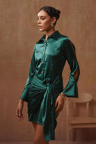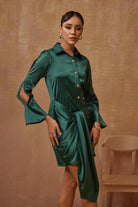 Crafted in satin button down shirt dress with a wrap tie gives this dress a chic and classic silhouette.