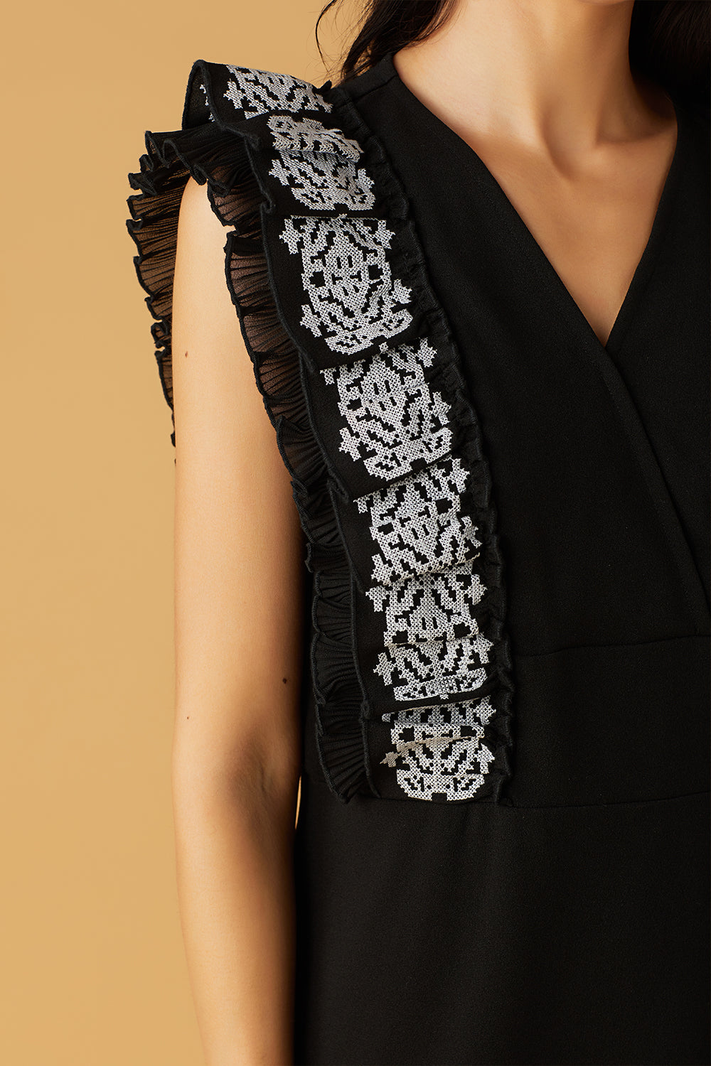 Featuring exquisite embroidered frills and pleated detail. This silhouette gives an elegant, flattering and yet a timeless sophistication.