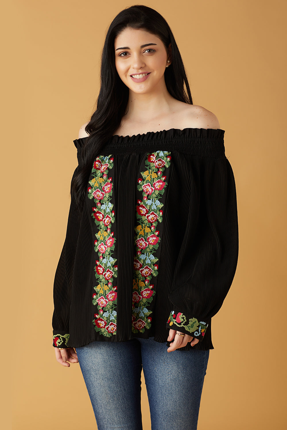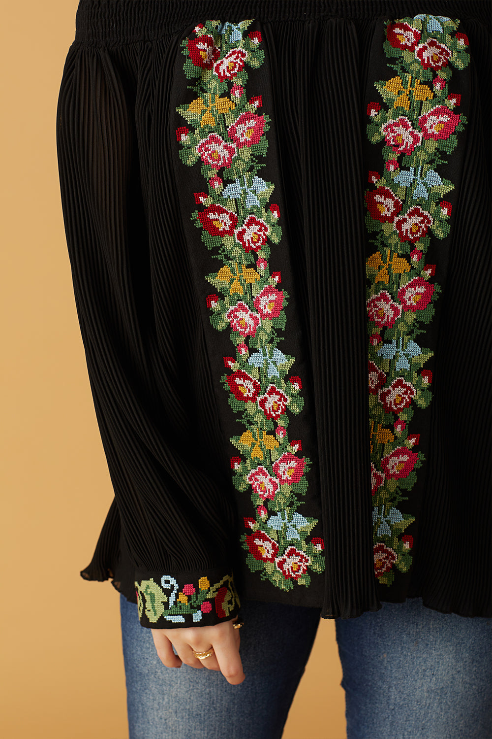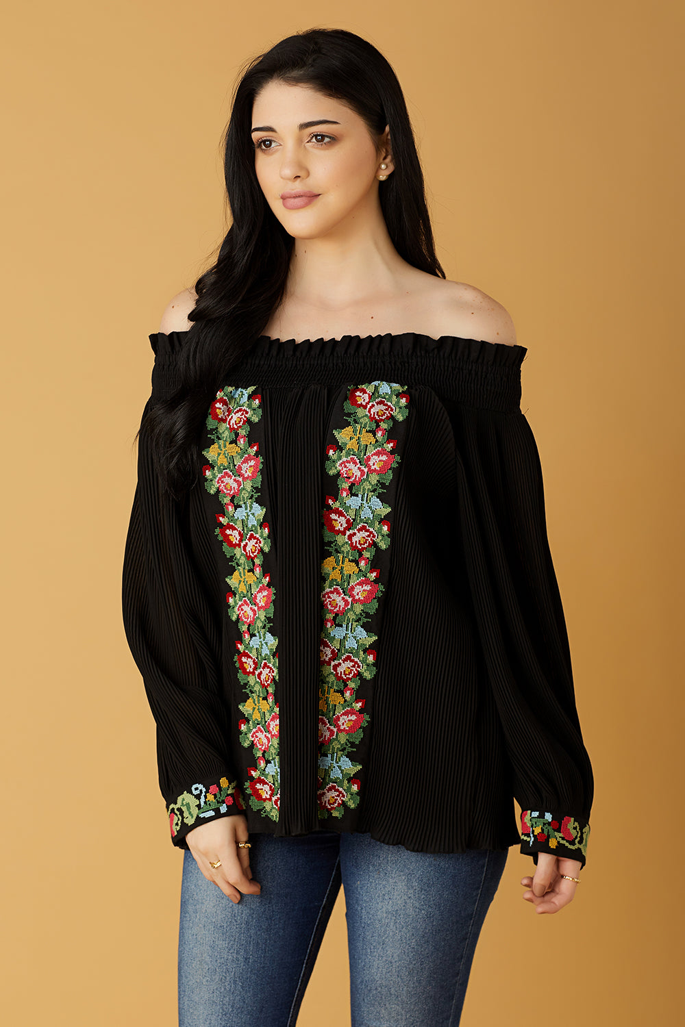 Enchanting floral embroidery across panels and finely pleated fabric and a flowy fit ensures this blouse will be a warm-weather favorite. Flattering and best of all-exclusively ours
