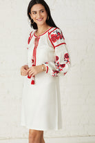 Floral Embroidered Dress With Lace and Tassel Detailing