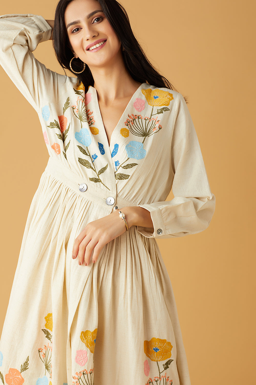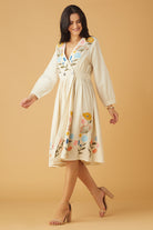 Enchanting floral embroidery and a flowy fit. It brings a hint of drama from flaunting at a brunch to lounging in your garden.Pair it with your favorite flats for a breezy polished ensemble.