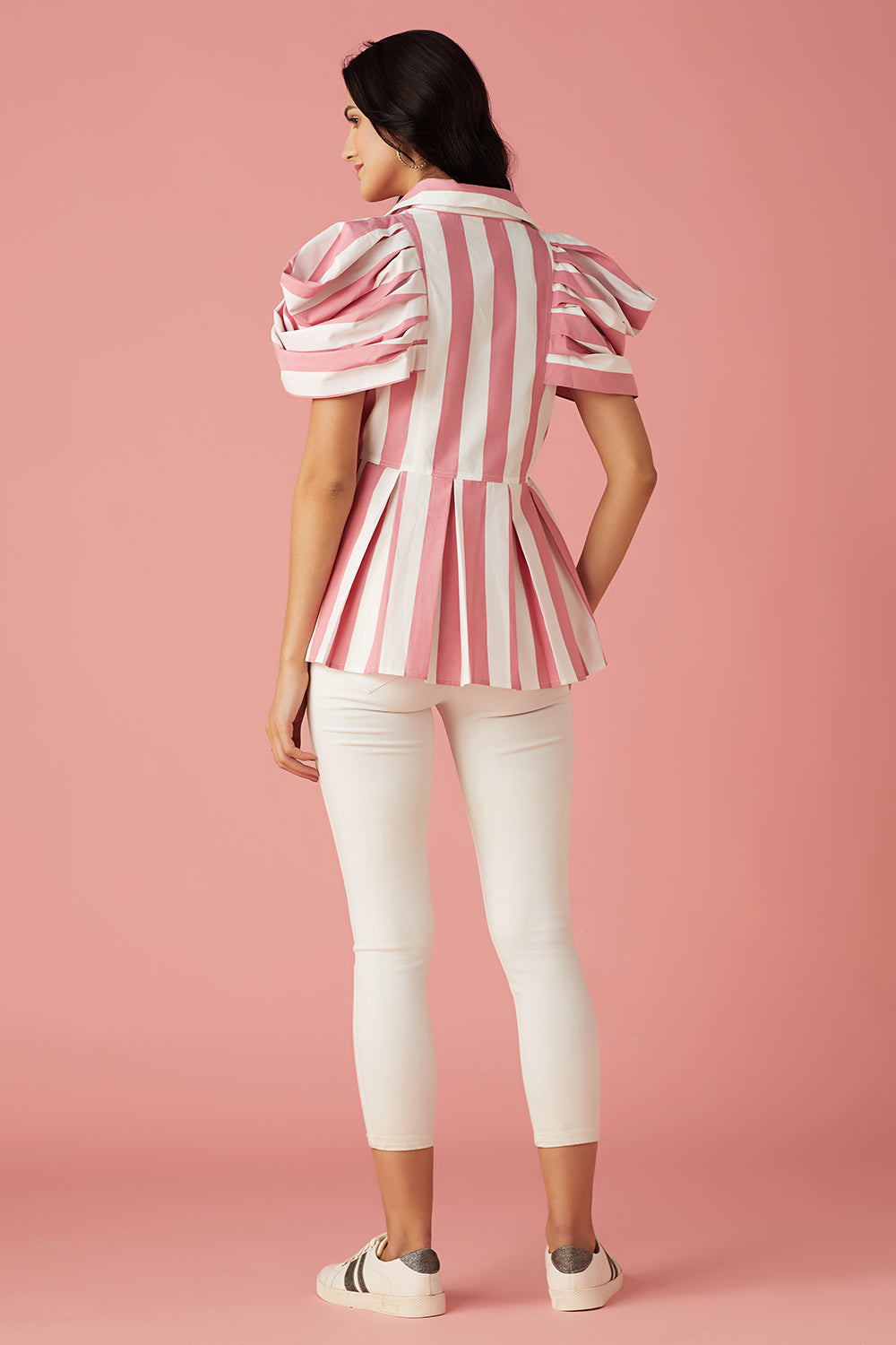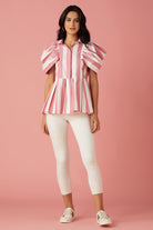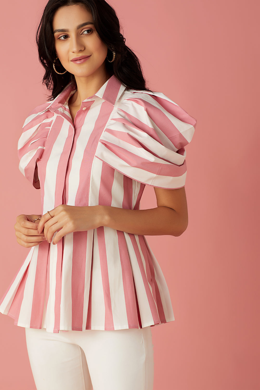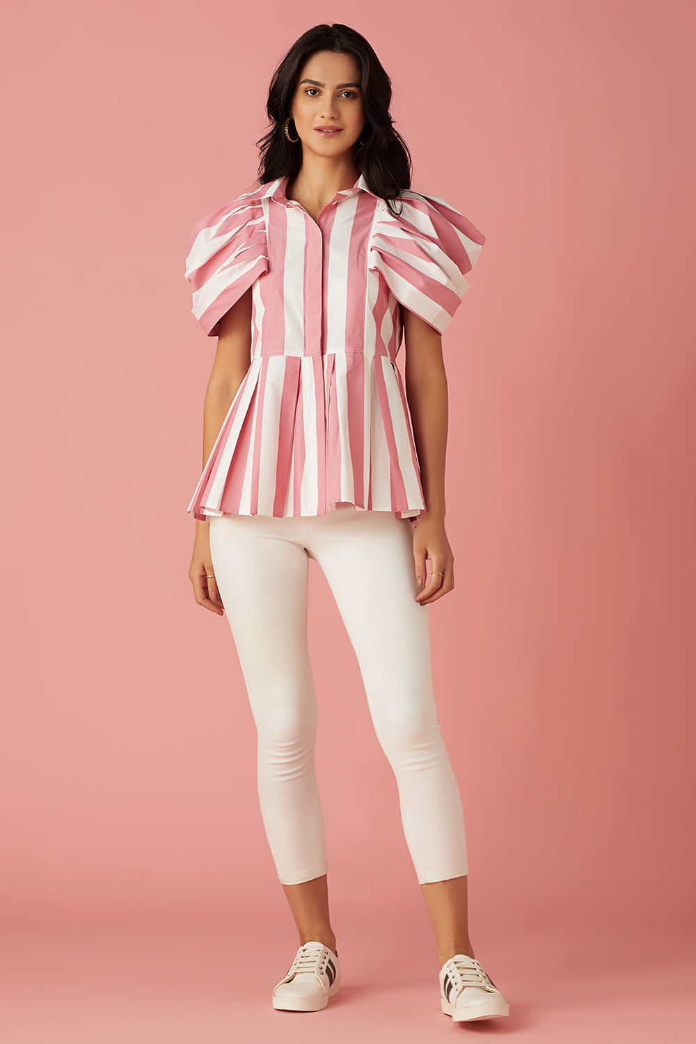 This shirt is structured yet delicate. Flattering sleeves and a peplum silhouette is a presentation of beauty and strength. A staple for your wardrobe