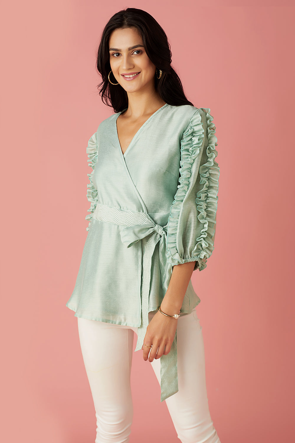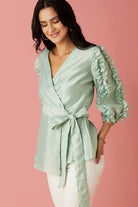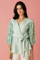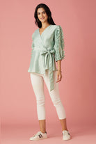 Powder Blue Wrap Blouse