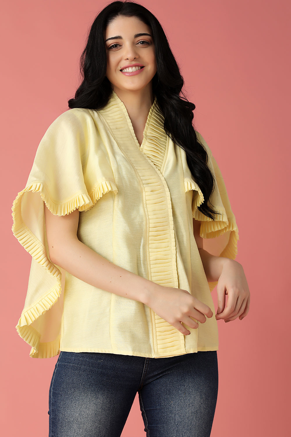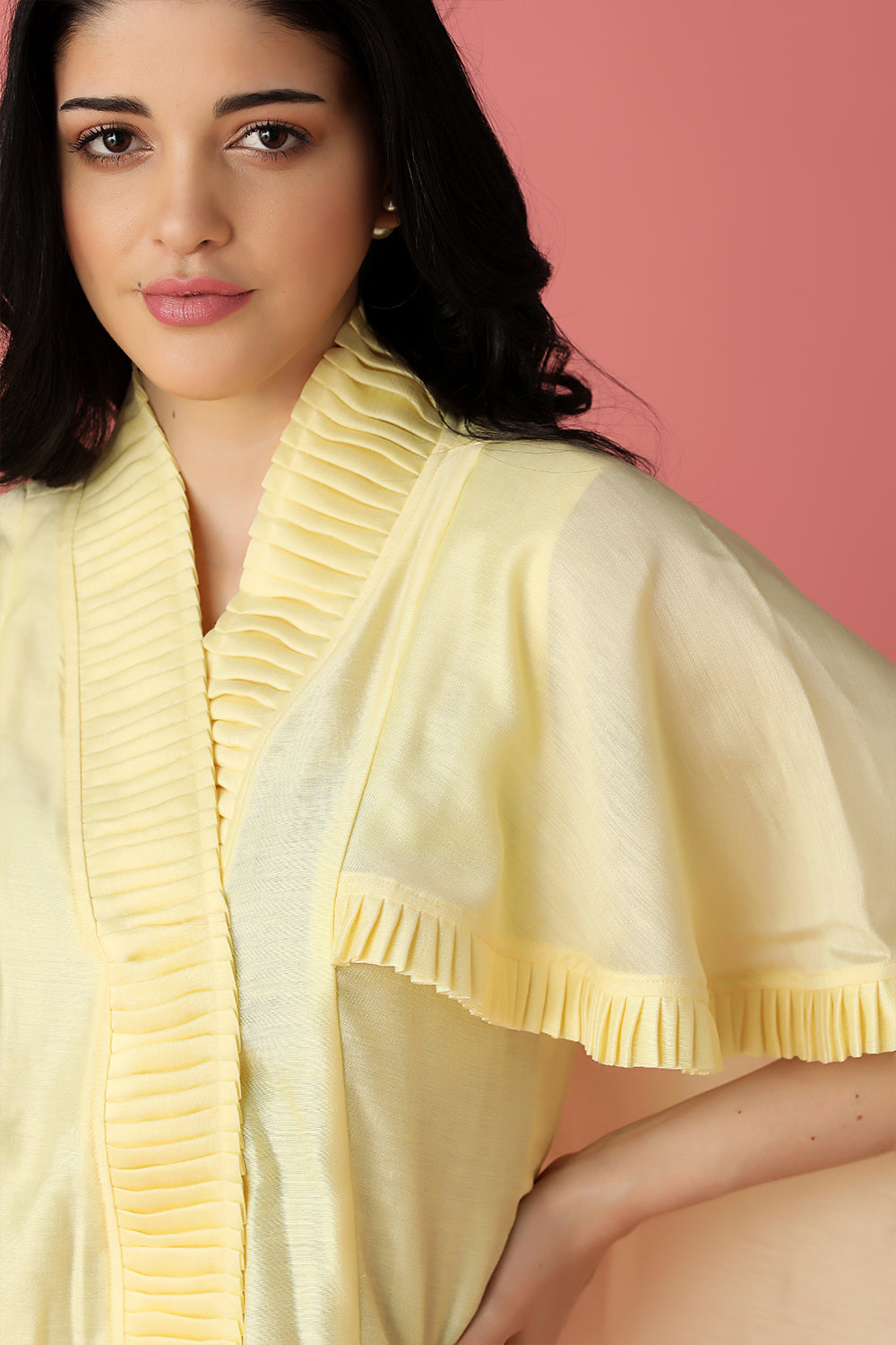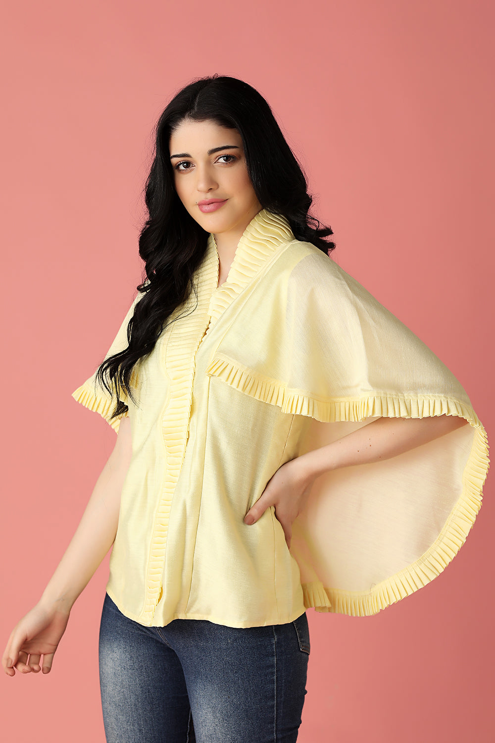Feminine, flattering, and versatile. This Blouse is hand pleated around the hem of the sleeves and the neckline. The blouse is exclusively designed for a special day or for a summer brunch. A classic must-have