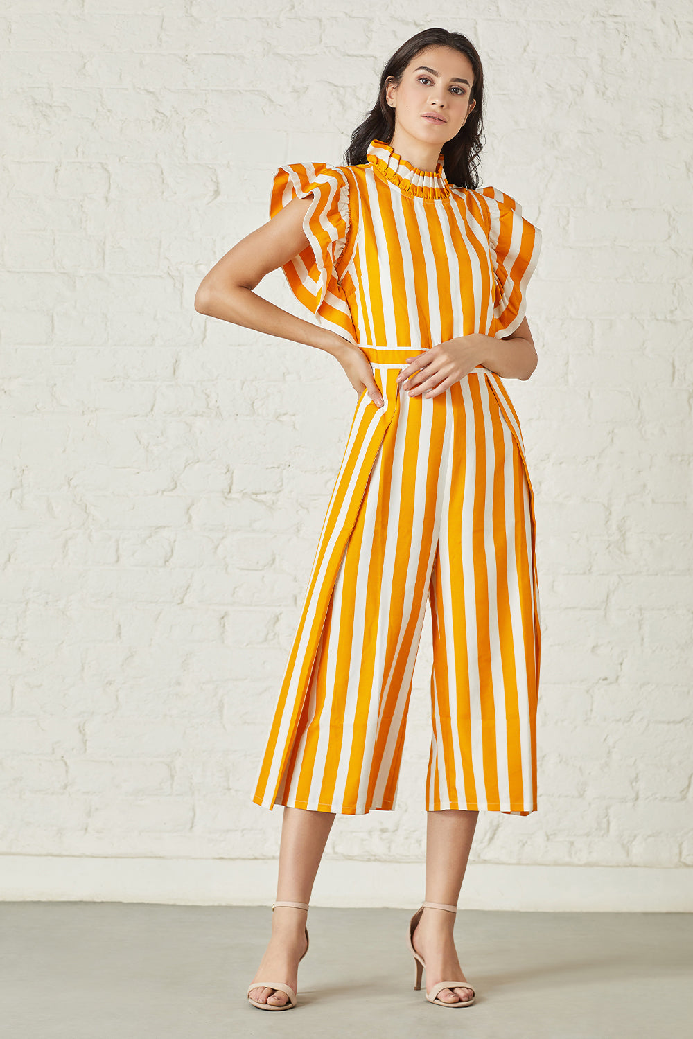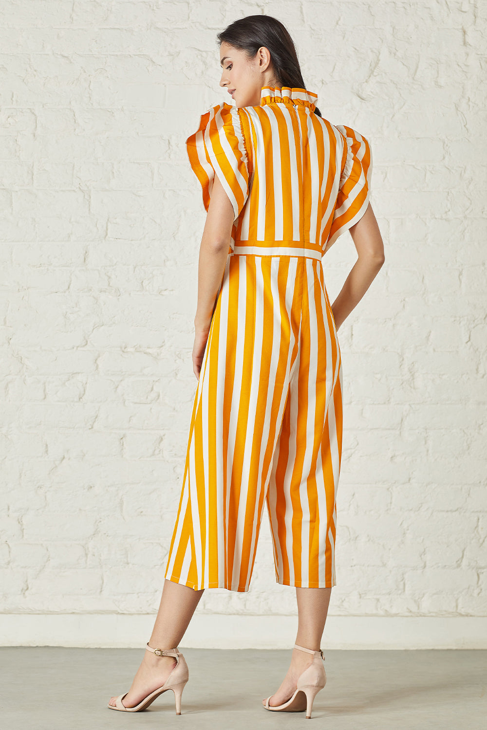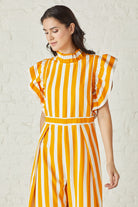 Striking stripe flutter sleeved jumpsuit