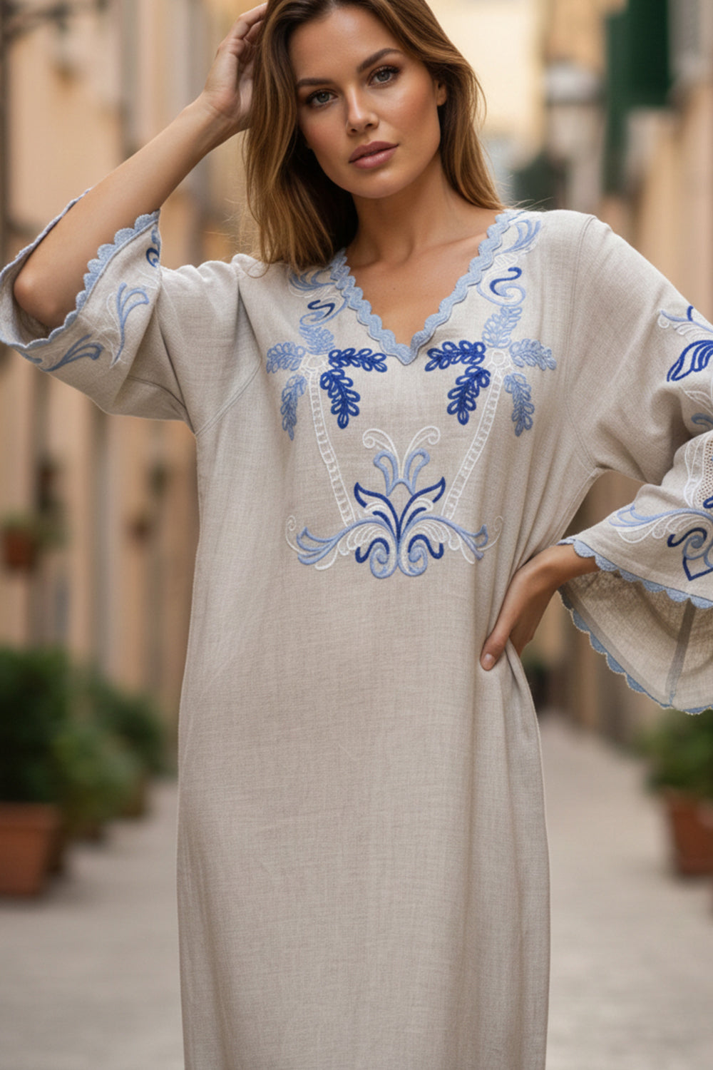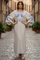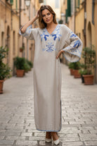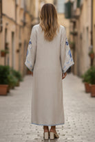 Exquisite embroidered bird paradise kaftan. A boho-chic exclusive.