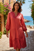 Exquisite embroidered pintuck detailed Scarlet dress.