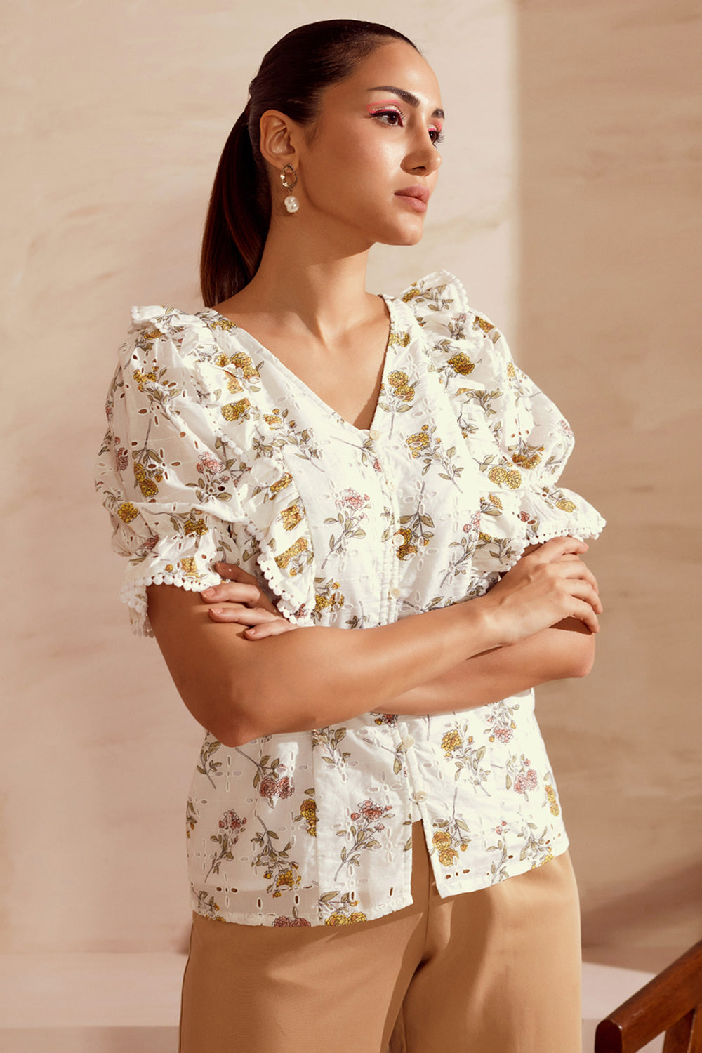 Button down broderie blouse is a staple you'll surely want to for a everyday to a brunch wardrobe.