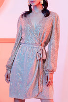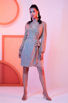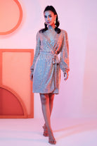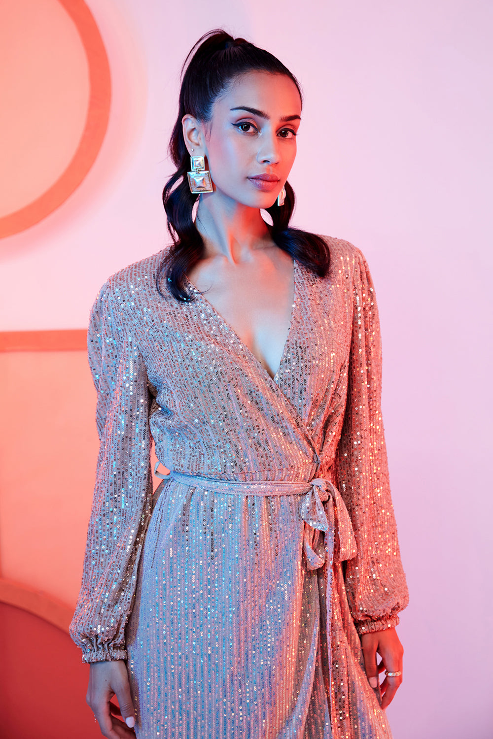 This beautifully crafted sequinned wrap dress makes the dress a heads turning statement.