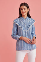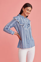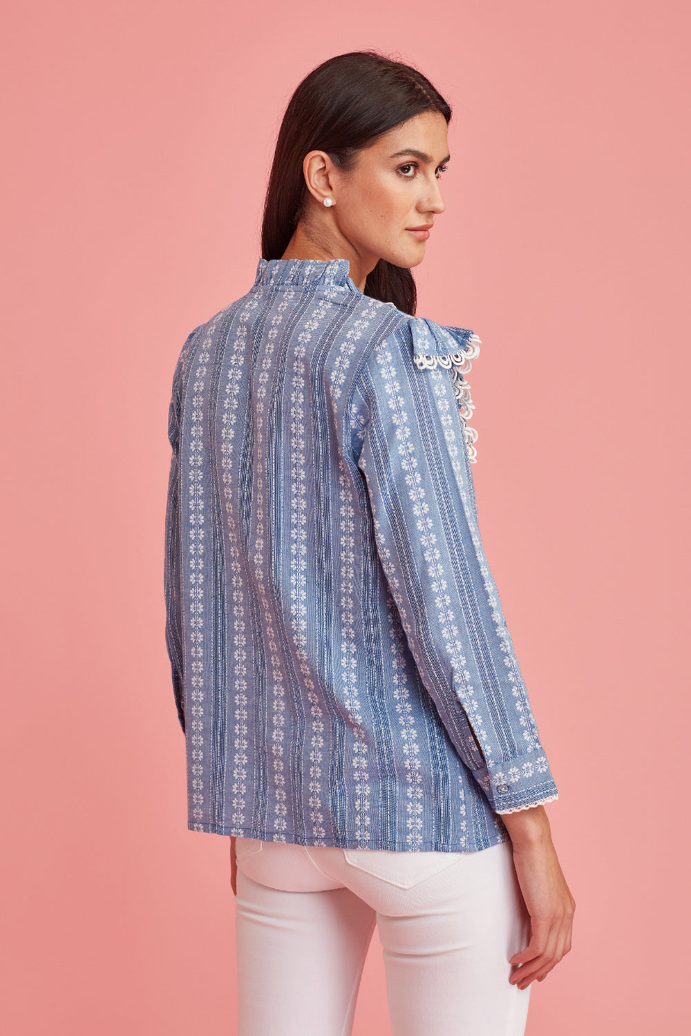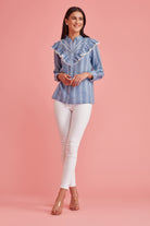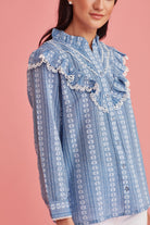 From its structured sleeves to an eyelet lace detailed finish, this stunning blouse is a study in dainty details. Pair it with distressed denim for a look that is both comfortable and endlessly chic.